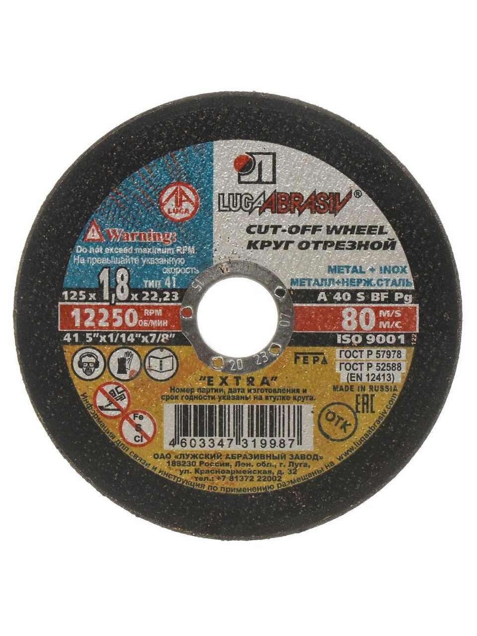 Вы можете приобрести «Круг отрезной по металлу, LugaAbrasiv, Extra, BF, диаметр 125х1.8 мм, посадочный диаметр 22.23 мм, зернистость A40, S 80 м/с» и другие товары в нашем интернет-магазине в Серпухове по низким ценам и с бесплатным самовывозом.