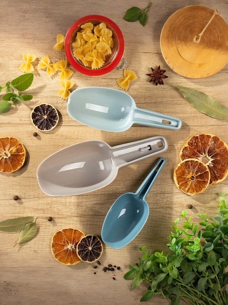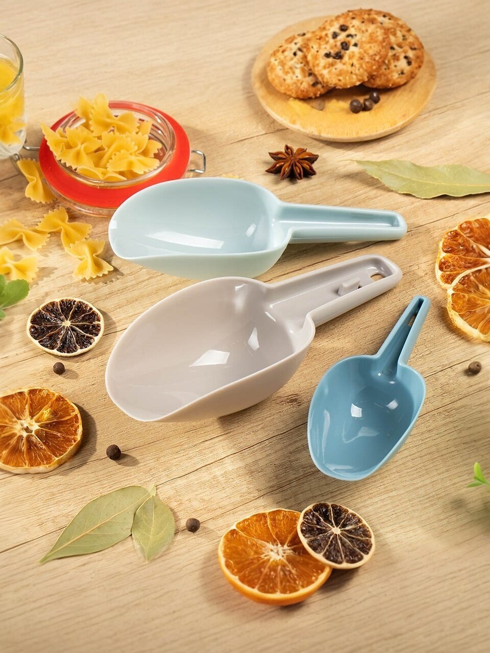 - Набор пластиковых совков позволяет быстро и точно отмерить нужное количество продукта, сокращая время на приготовление блюд.