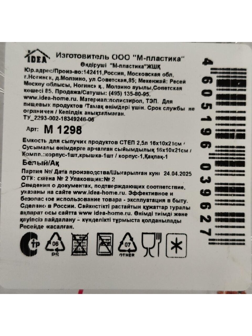 Вы можете приобрести «Банка для сыпучих продуктов, пластик, 2.5 л, 10х16х21 см, с крышкой, Idea, Степ, М 1298» и другие товары в нашем интернет-магазине в Старом Осколе по низким ценам и с бесплатным самовывозом.