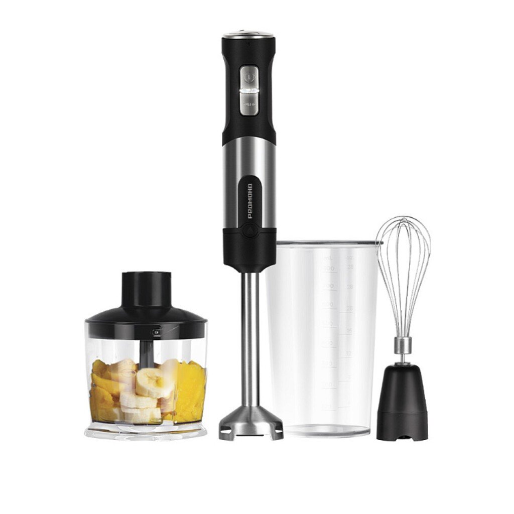 Погружной блендер Редмонд RHB-2902 — выбор для тех, кто ищет, какой блендер лучше для дома или дачи: высокая мощность 1500 Вт, турборежим и острые лезвия позволяют быстро приготовить смузи, пюре, супы или замесить тесто. В комплекте: мерный стакан, измельчитель, венчик и чаша — всё для разных кулинарных задач. Устройство легко справляется с орехами, овощами, льдом, мясом — это выгодно отличает его от моделей с меньшей мощностью и скудной комплектацией.
