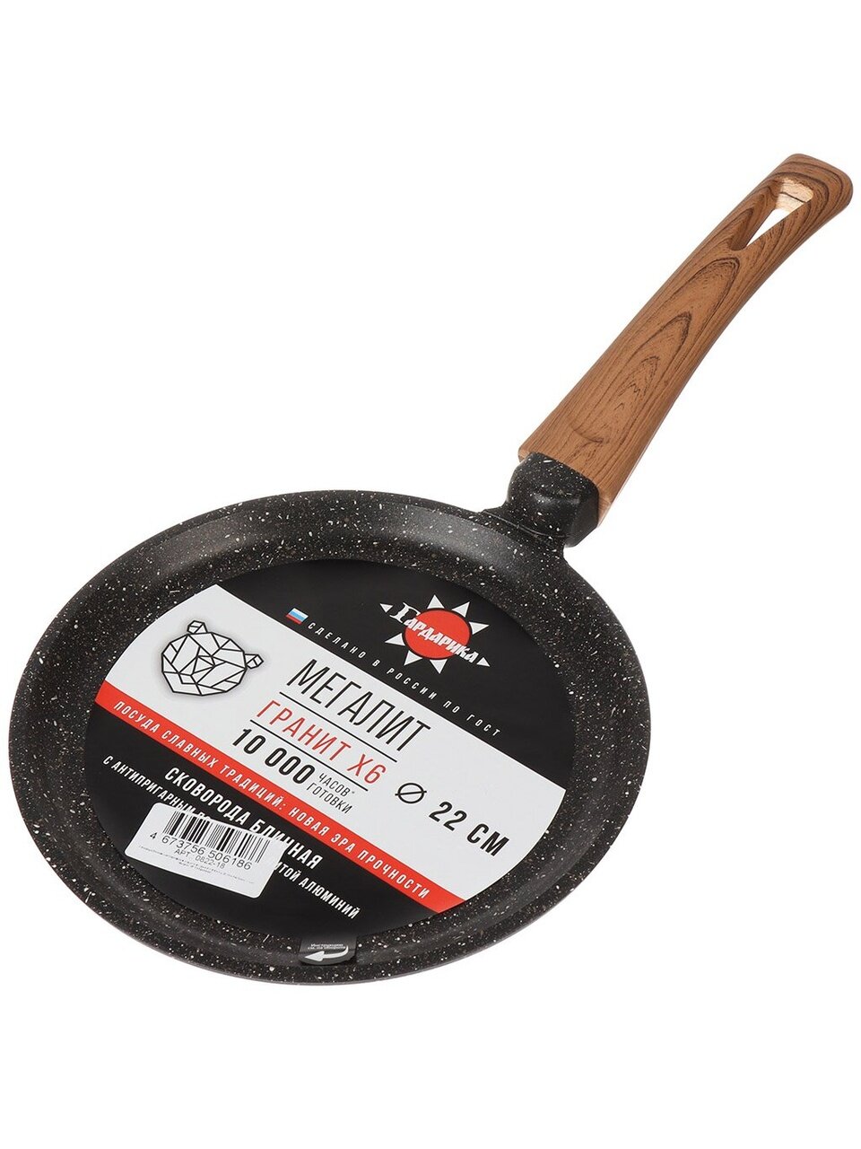 Вы можете приобрести «Блинница алюминий, 22 см, антипригарное покрытие, Гардарика, Мегалит 18, 0822-18, бакелитовая ручка, ручка soft-touch» и другие товары в нашем интернет-магазине в Санкт-Петербургe по низким ценам и с бесплатным самовывозом.