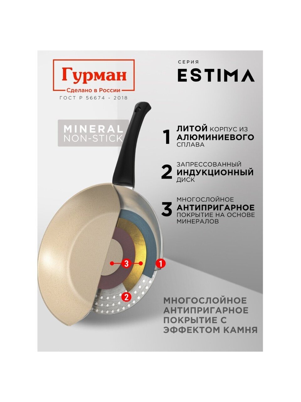 Вы можете приобрести «Блинница алюминий, 24 см, антипригарное покрытие, Гурман, Estima, бежевая, ГМб241 ЭБИ, пластиковая ручка, индукция» и другие товары в нашем интернет-магазине в Старом Осколе по низким ценам и с бесплатным самовывозом.