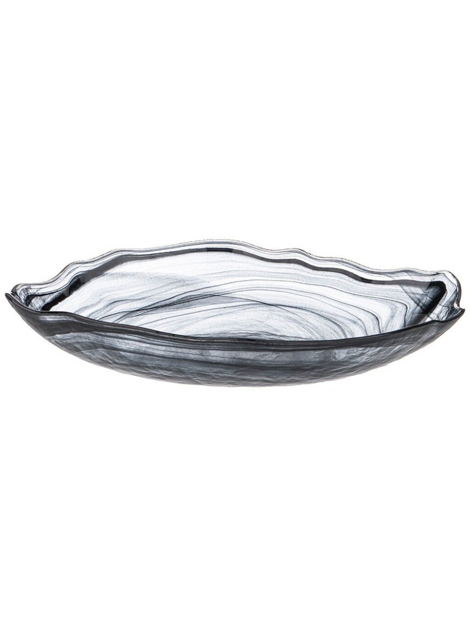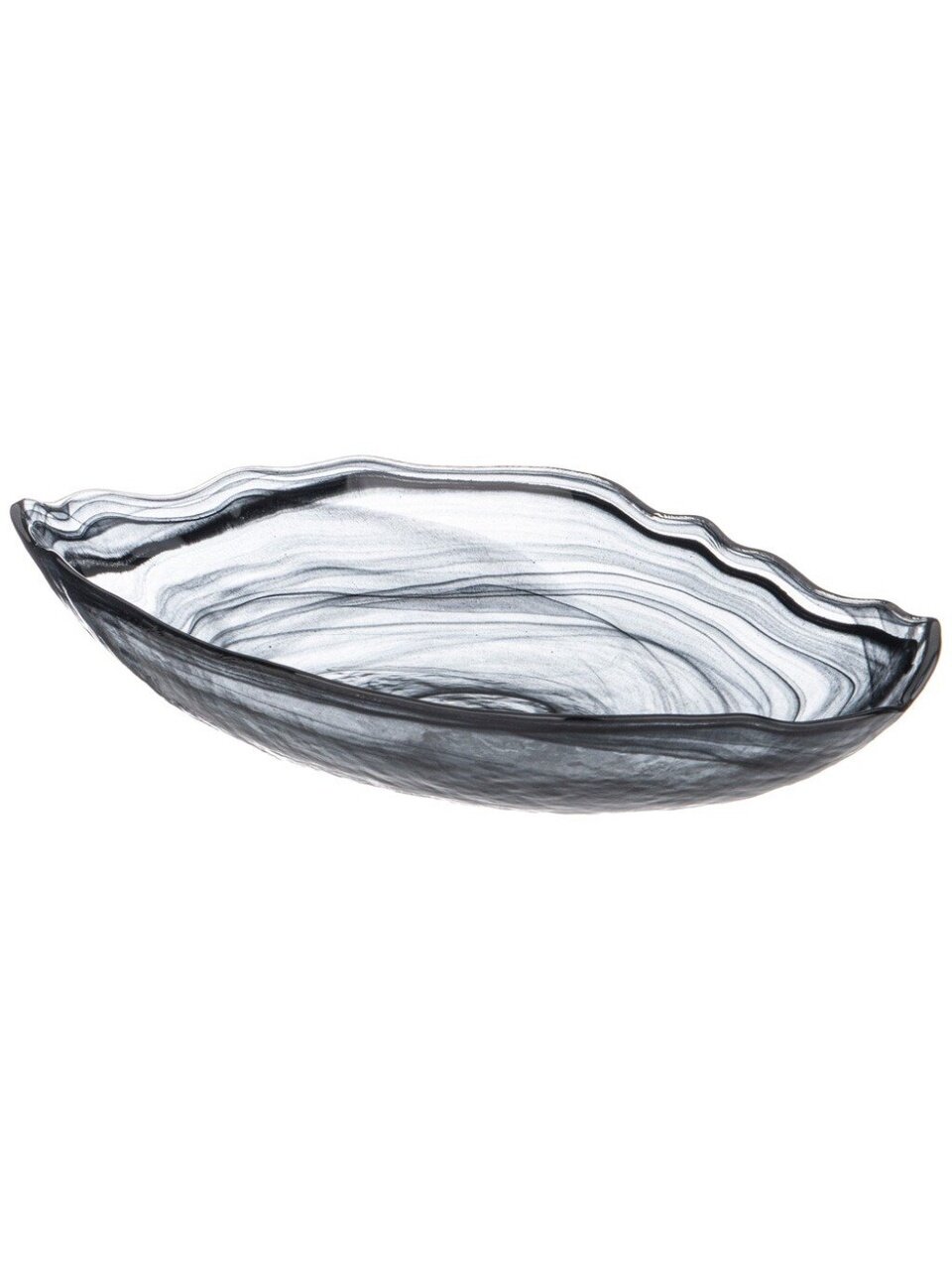 Овальное блюдо Murano Bronco 15.5х28 см — премиальное стекло с мраморным дизайном для эффектной подачи закусок и фруктов. Идеальный подарок и стиль для вашего стола.