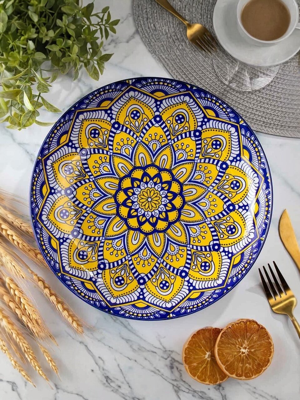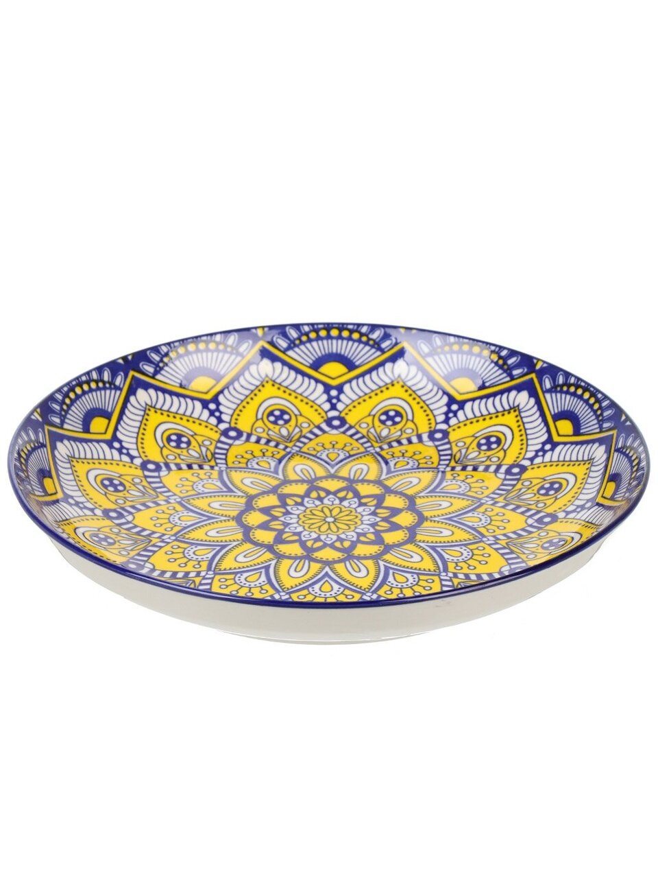 Блюдо из керамики «Мантра» диаметром 25 см — это не только практичная посуда для повседневного и праздничного стола, но и стильный элемент декора. Благодаря бортикам высотой 3,5 см удобно сервировать плов, салаты, мясные блюда, фрукты или закуски. Яркий синий цвет с абстрактным рисунком выделяет блюдо среди классических аналогов, делая подачу эффектной и современной.