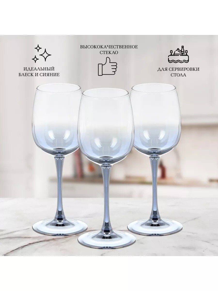 Бокал для вина Glasstar Черное море Омбре эдем — набор из 3 стеклянных бокалов по 300 мл в подарочной упаковке: стиль для сервировки, выгодно для дома и подарка.