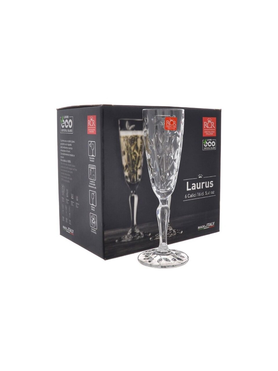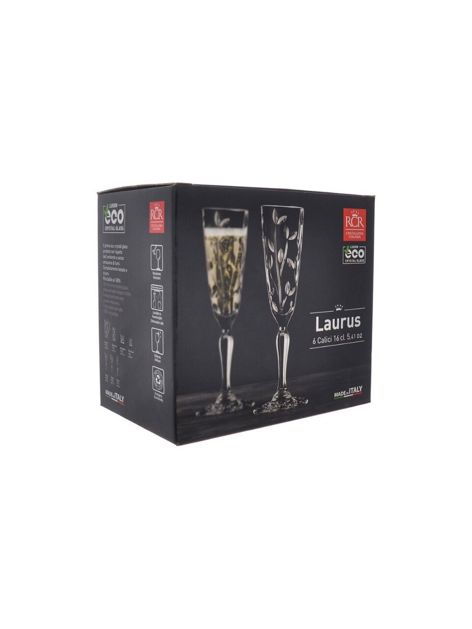 Премиальный набор бокалов для шампанского RCR Laurus 160 мл (6 шт): элегантность итальянского хрустального стекла для праздничной сервировки и подарка.