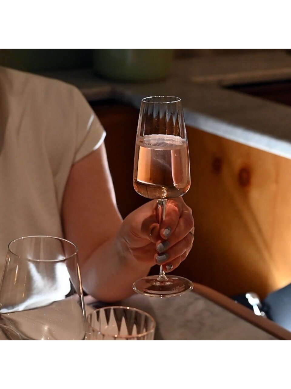 Объем каждого бокала — 210 мл. Это идеальный размер для подачи шампанского, просекко и других игристых вин, чтобы напиток дольше оставался прохладным и игристым.