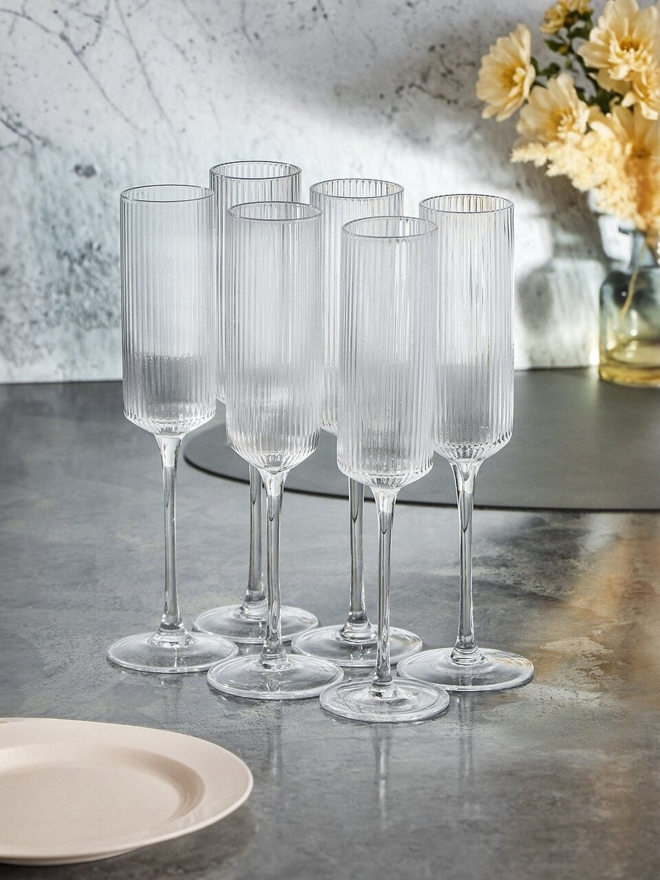 - Прозрачное хрустальное стекло с рельефным узором — эффектная подача игристого на любой праздник