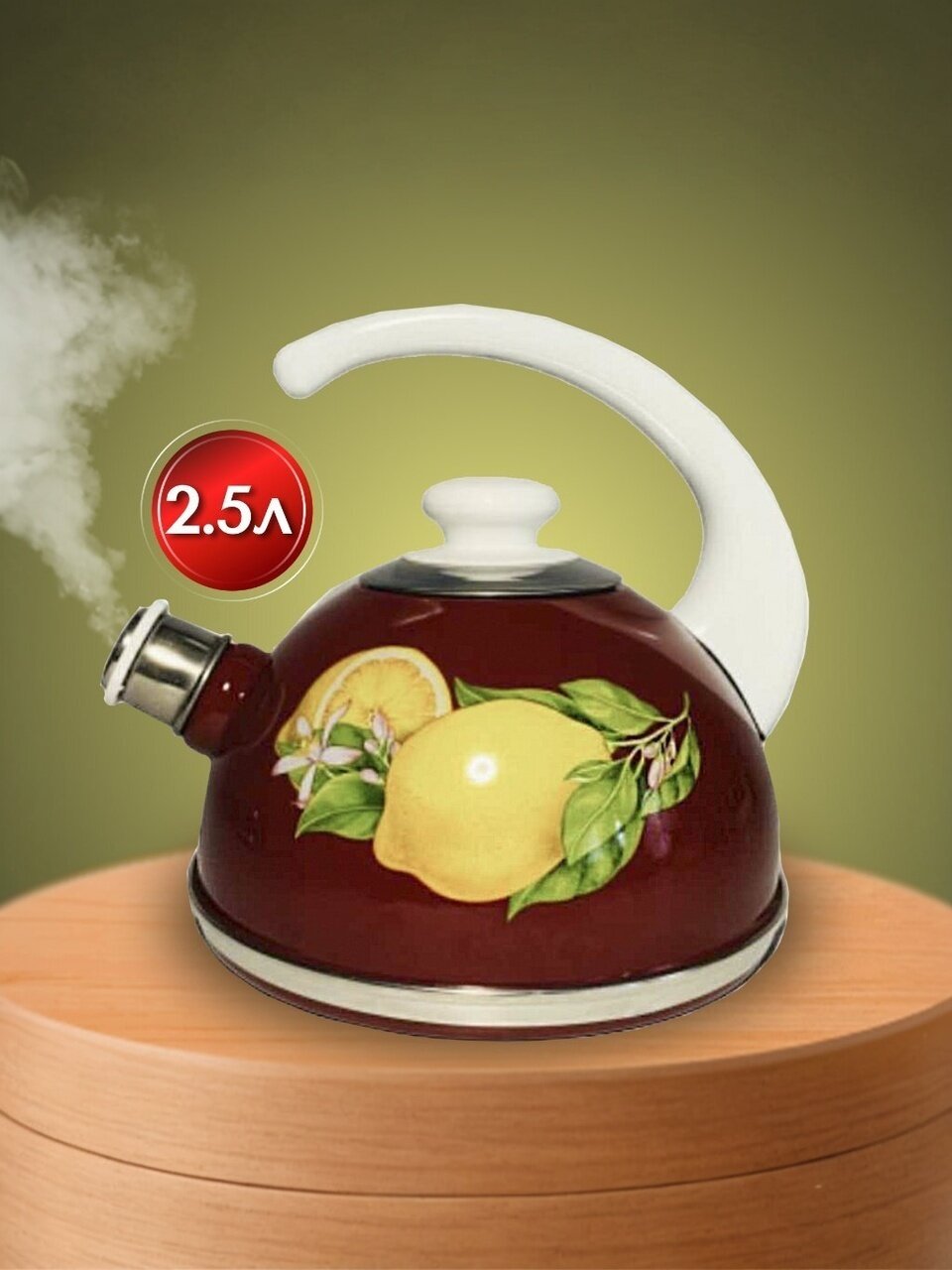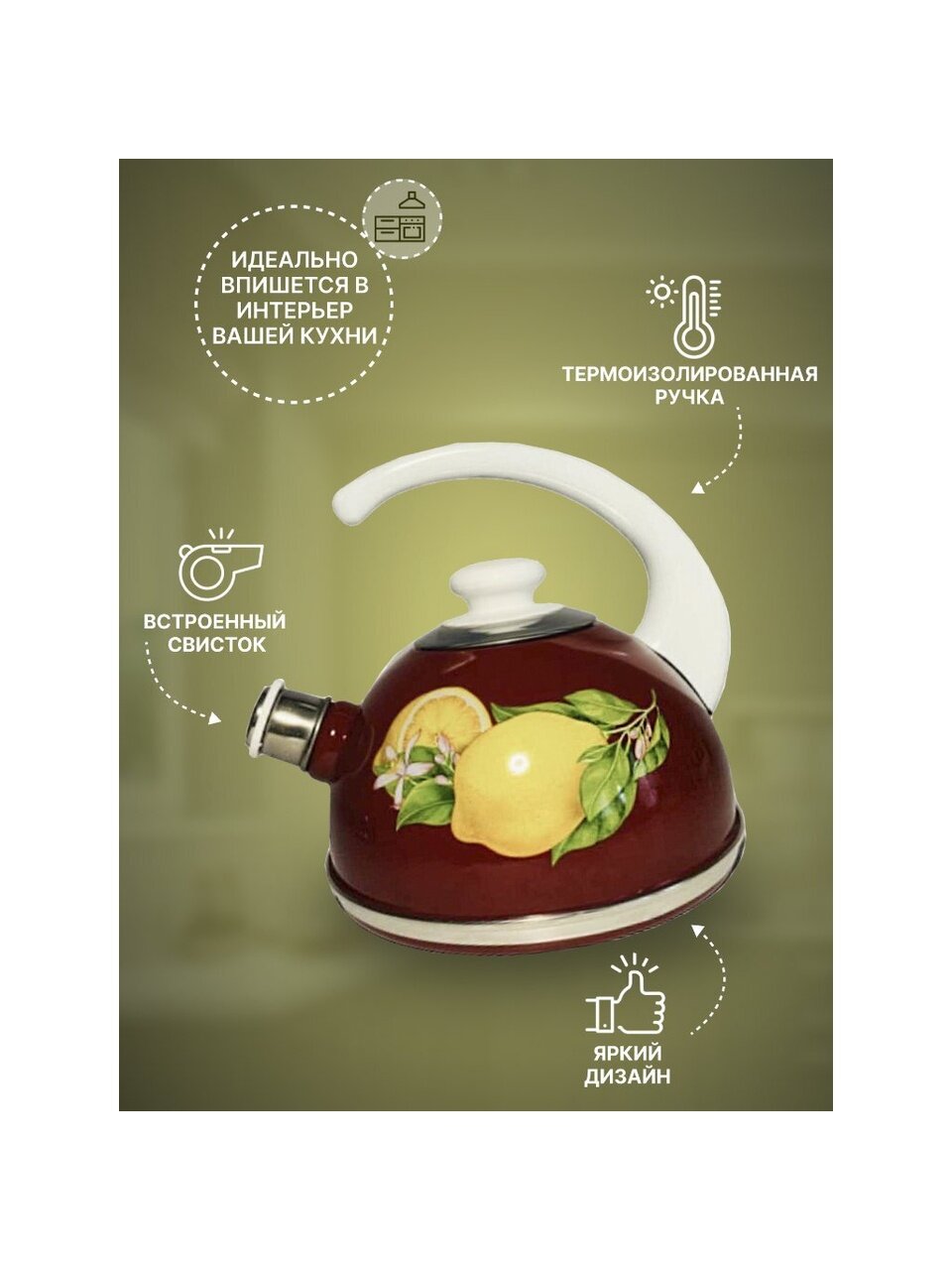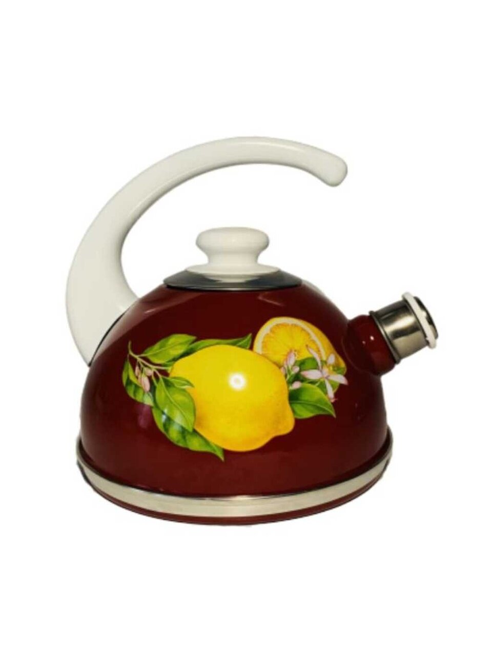 Вы можете приобрести «Чайник сталь, эмалированное покрытие, 2.5 л, со свистком, ручка консольная, Рубин, Лимоны, бордовый, T04/25/01/35/H03» и другие товары в нашем интернет-магазине в Казани по низким ценам и с бесплатным самовывозом.