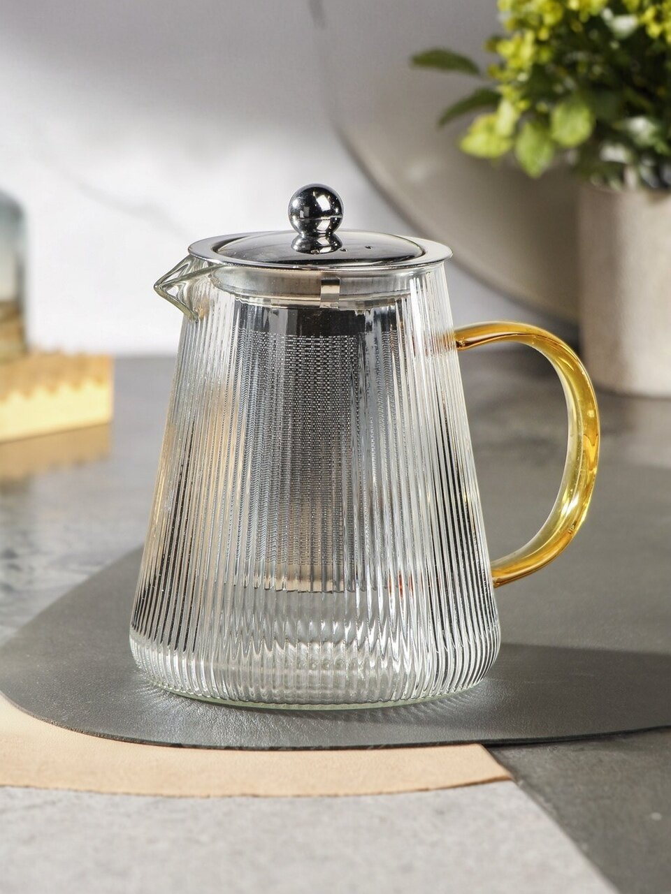 Ищете идеальный заварочный чайник, который станет стильным дополнением к вашей кухне и обеспечит превосходное качество заварки? Представляем стеклянный заварочный чайник с металлическими элементами объемом 0.95 литра, который сочетает в себе элегантность и функциональность. Этот чайник станет незаменимым помощником в создании вашего любимого напитка, позволяя наслаждаться каждым глотком ароматного чая.