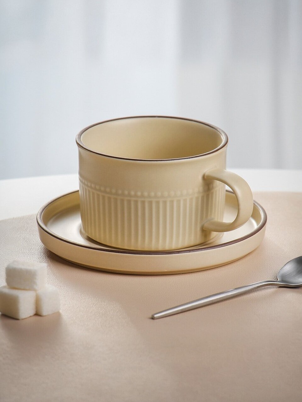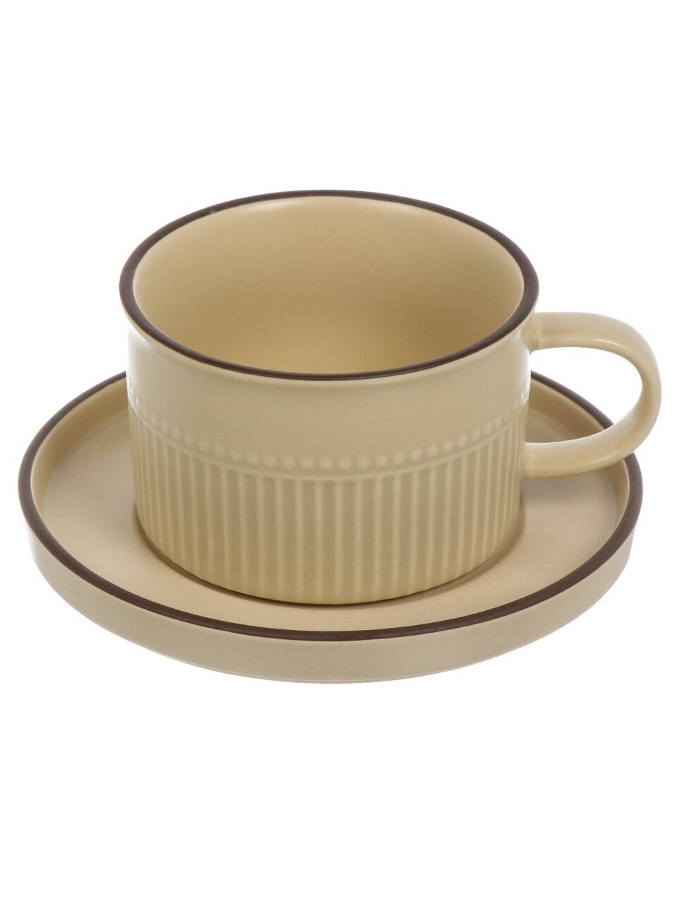 Чайная пара 280 мл «Бежевый Антик»: стильная керамика для уютного чаепития дома и на даче, подходит для посудомоечной машины и СВЧ.