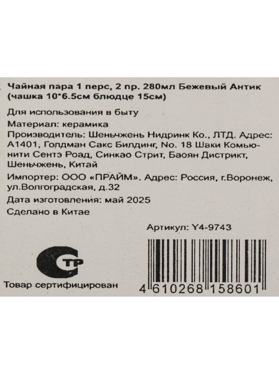 Вы можете приобрести «Чайная пара керамика, 2 предмета, на 1 персону, 280 мл, Бежевый Антик, Y4-9743» и другие товары в нашем интернет-магазине в Иваново по низким ценам и с бесплатным самовывозом.