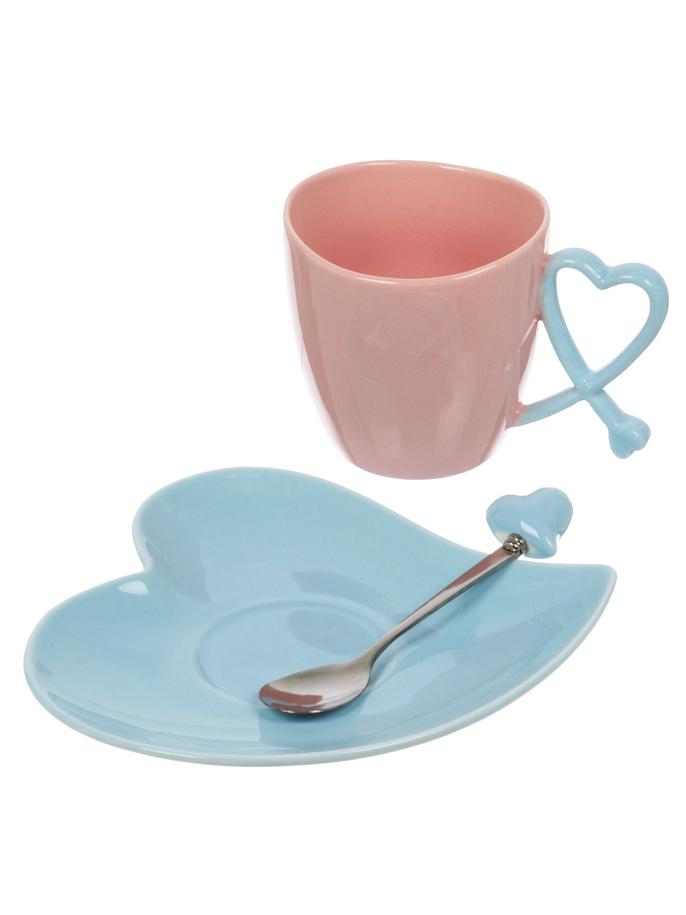 Чайная пара керамика, 3 предмета, 300 мл, Сердечко — стильное решение для уютных чаепитий и оригинального подарка, доступно купить недорого для дома и дачи.