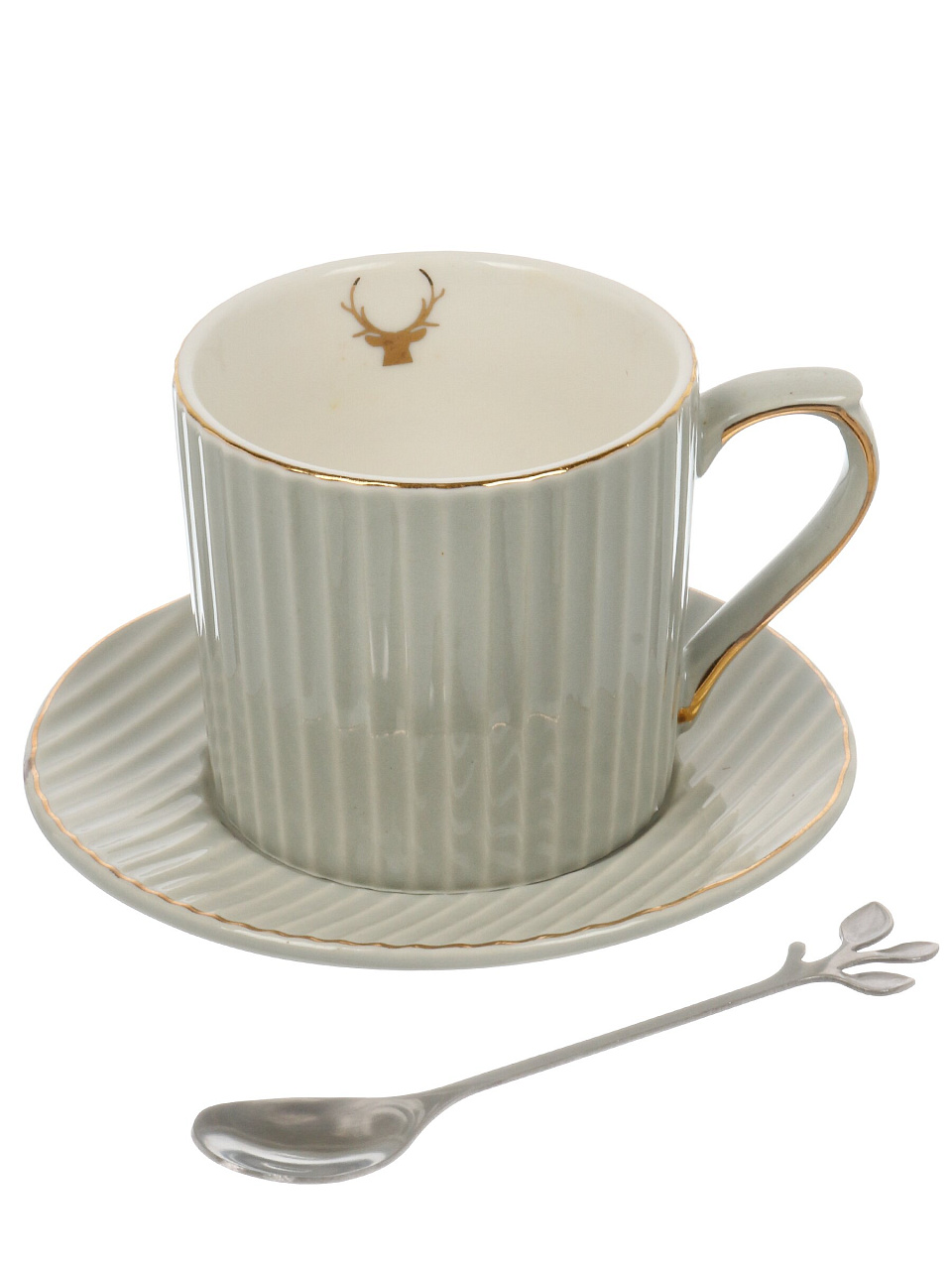 В комплекте 3 предмета: чашка объемом 180 мл, блюдце и ложка — оптимально для одного человека и ежедневного использования.