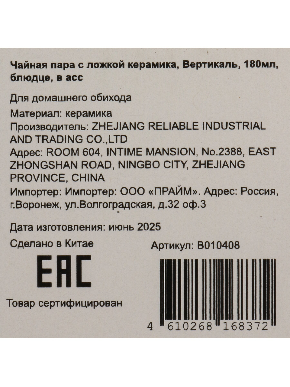 Вы можете приобрести «Чайная пара керамика, 3 предмета, на 1 персону, 180 мл, Вертикаль, B010408, в ассортименте» и другие товары в нашем интернет-магазине в Белгороде по низким ценам и с бесплатным самовывозом.