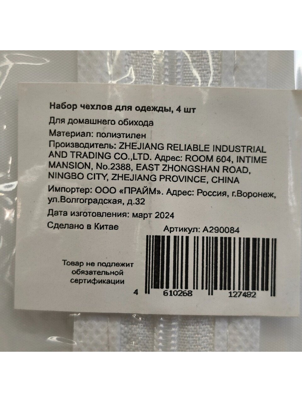 Вы можете приобрести «Набор чехлов полиэтилен, для одежды, 4 шт, 60х80, 60х120 см, A290084» и другие товары в нашем интернет-магазине в Ярославле по низким ценам и с бесплатным самовывозом.