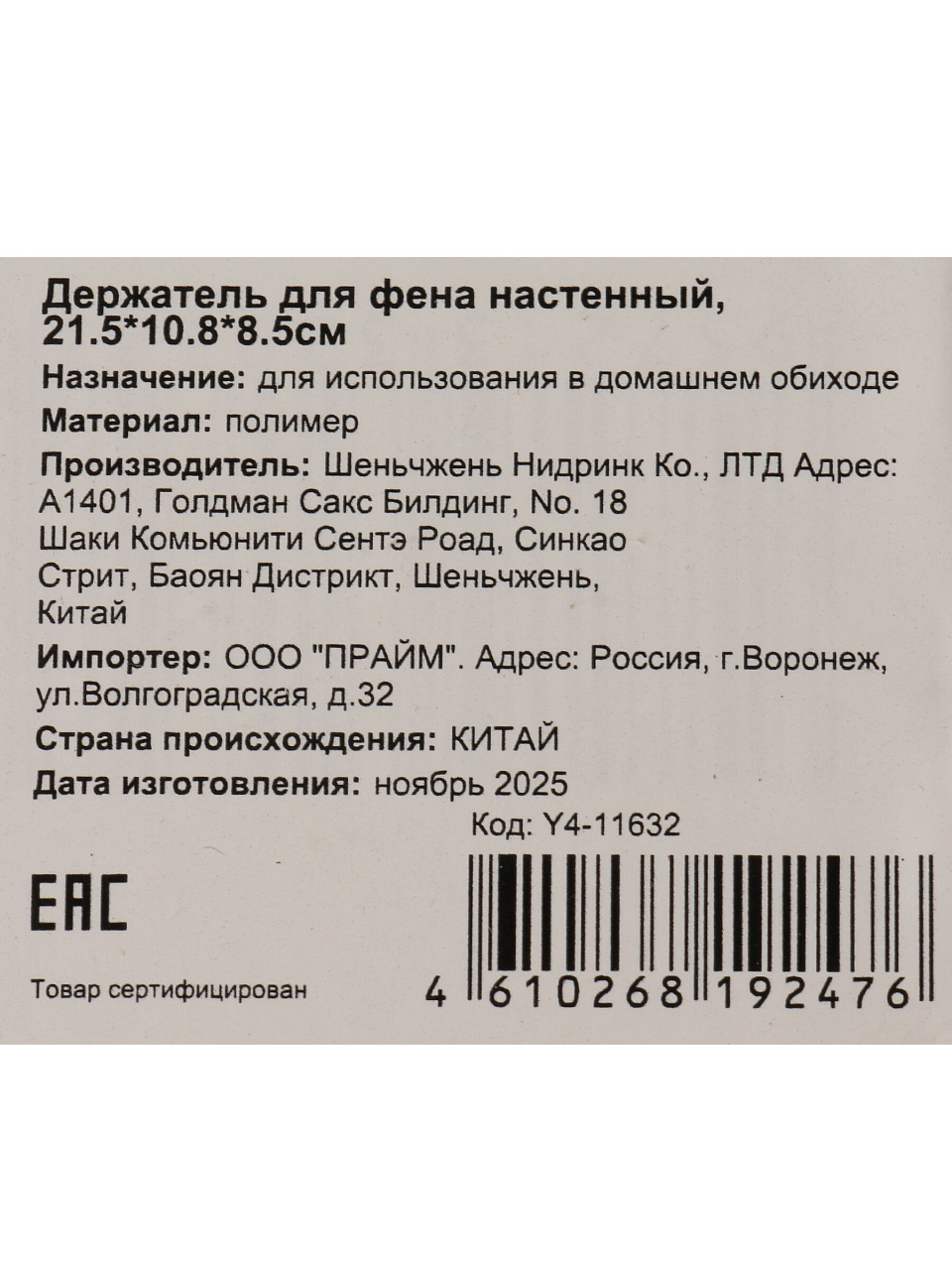Вы можете приобрести «Держатель для фена, настенный, 21.5Х10.8Х8.5 см, пластик, Y4-11632» и другие товары в нашем интернет-магазине в Армавире по низким ценам и с бесплатным самовывозом.