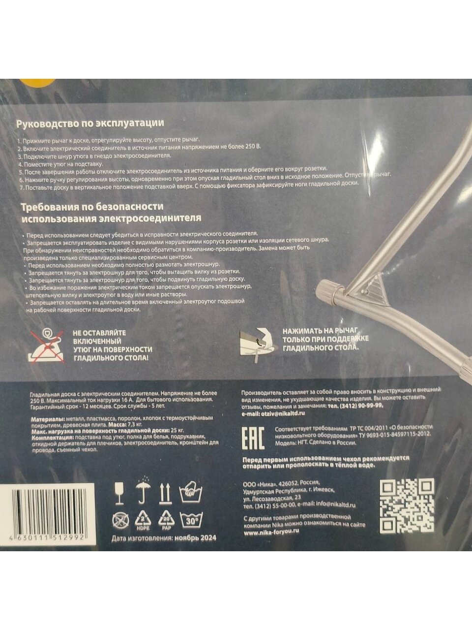 Покупка гладильной доски Grant от Nika принесет неоспоримую выгоду: время, затраченное на глажку, сократится, а качество результата порадует даже самых требовательных пользователей. В комплект входят: