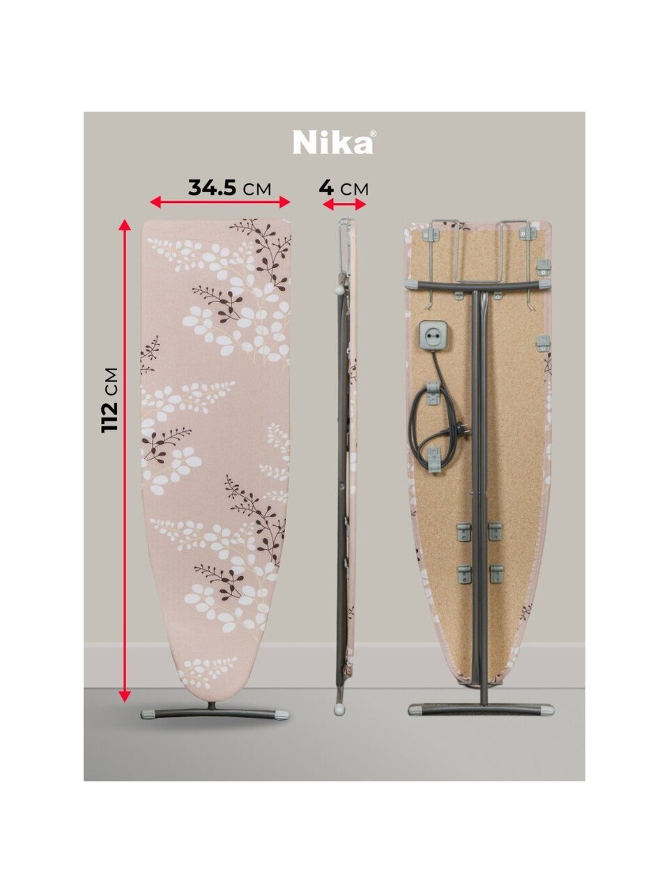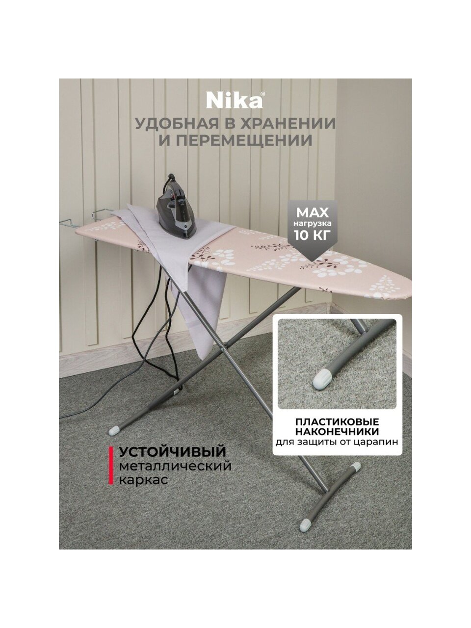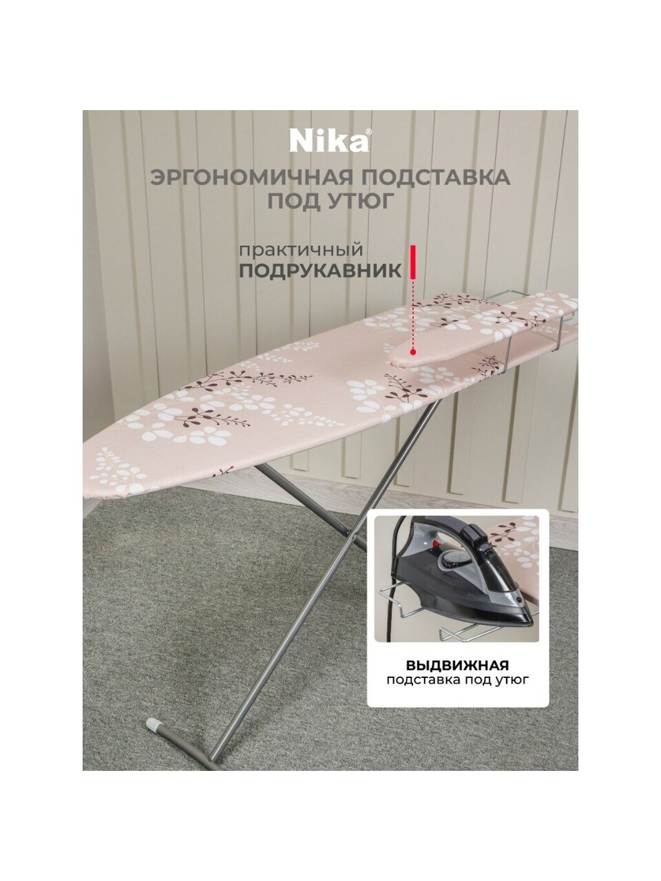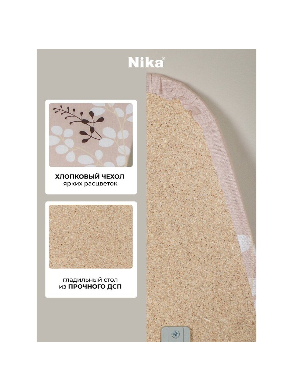 Гладильная доска Nika Лина 4 с рабочей поверхностью из ДСП и чехлом из хлопка – отличный вариант для ежедневного использования. Изделие оснащено выдвижным подутюжником и съёмным подрукавником.