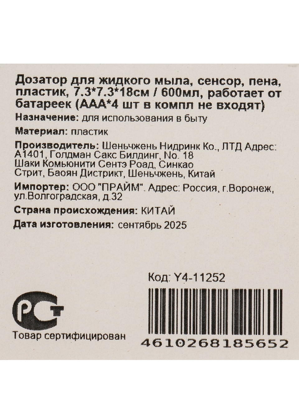 Вы можете приобрести «Дозатор для жидкого мыла, сенсорный, пластик, 7.3х7.3х18 см, 600 мл, пена, Y4-11252» и другие товары в нашем интернет-магазине в Брянске по низким ценам и с бесплатным самовывозом.