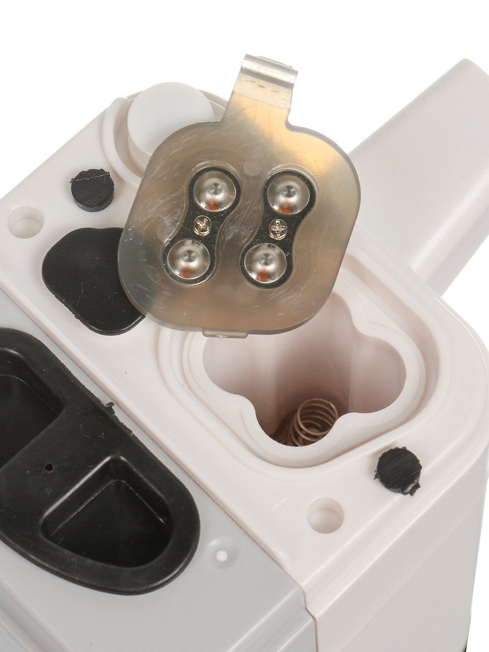 Встроенный инфракрасный сенсор реагирует на движение руки на расстоянии 3-5 см и автоматически подаёт порцию пены. Ёмкость — 0.6 л, корпус — пластик, размеры — 7.3х7.3х18 см.