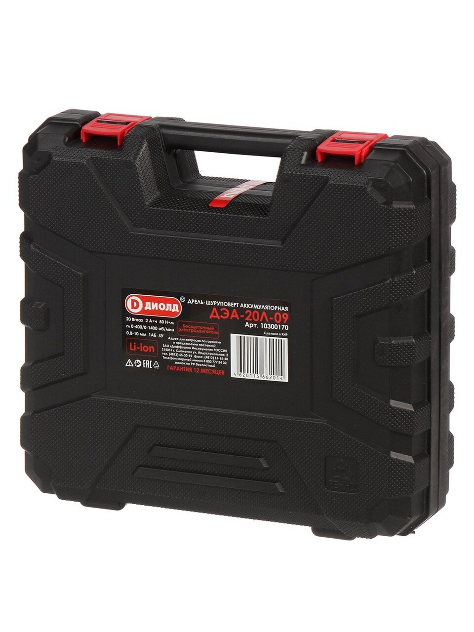 Вы можете приобрести «Дрель-шуруповерт аккумуляторный, Диолд, ДЭА-20Л-09, бесщеточный, 20 В, кейс, 10300170» и другие товары в нашем интернет-магазине в Таганроге по низким ценам и с бесплатным самовывозом.