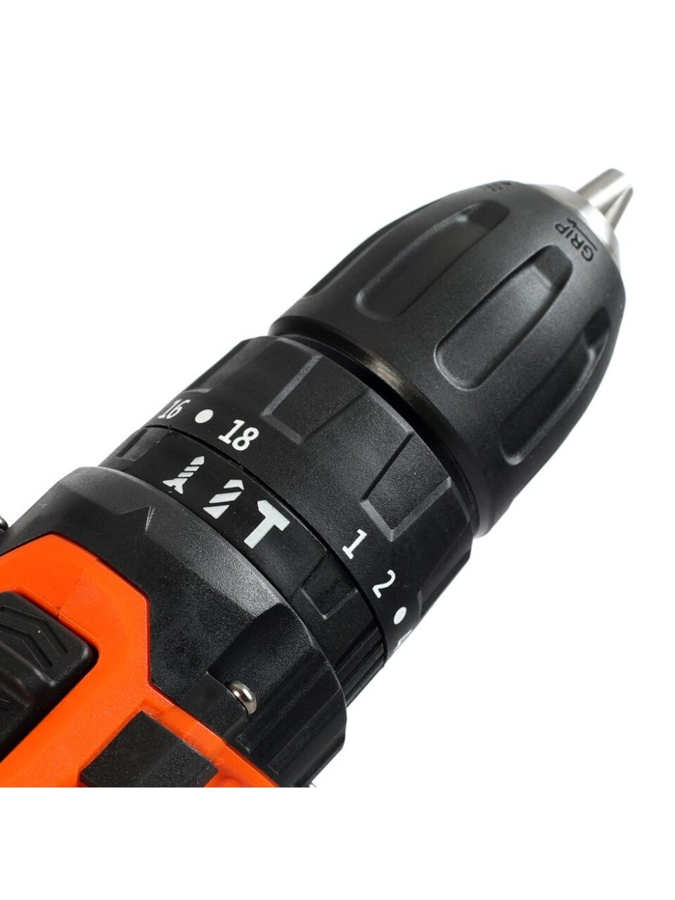 Аккумуляторная дрель-шуруповерт Patriot BR 201UES-h комплектуется удобным кейсом для хранения, двумя источниками питания и зарядным устройством для них, а также двусторонней битой. Индикатор зарядки проинформирует вас о том, что пора заменить аккумулятор заряженным. Модель располагает двумя скоростями с максимальным числом оборотов холостого хода, равным 1350 об/мин. Реверс пригодится при необходимости извлечь застрявшую оснастку из обрабатываемого материала. Щеточный двигатель предусматривает электронную защиту от перегрузок. В корпусе устройства предусмотрена подсветка рабочей зоны и гнездо для крепления бит.
