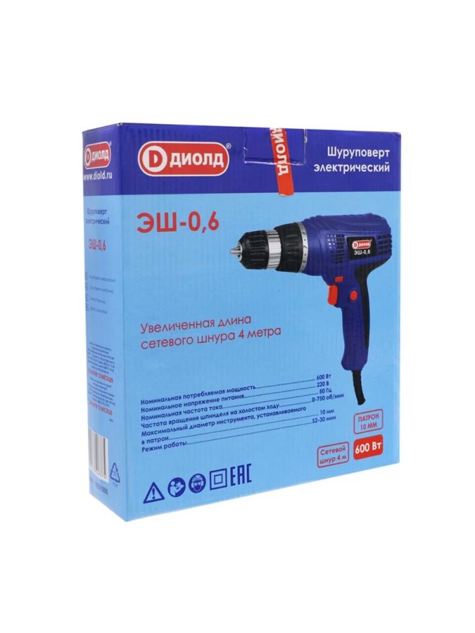 Вы можете приобрести «Дрель-шуруповерт сетевая Диолд, ЭШ-0,6, быстрозажимной патрон, 10 мм, 600 Вт, с реверсом, 1 скорость» и другие товары в нашем интернет-магазине в Таганроге по низким ценам и с бесплатным самовывозом.