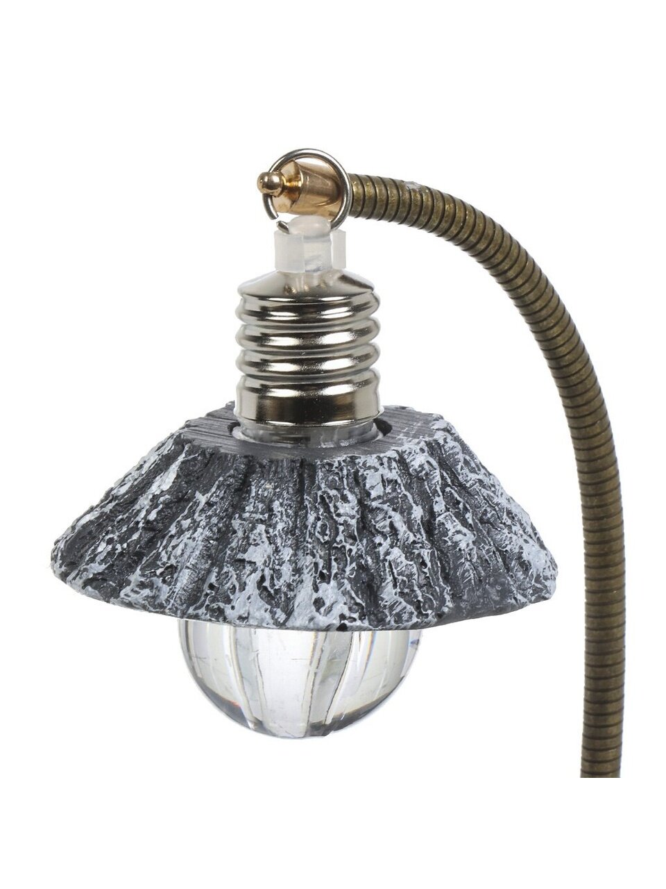 Лампочка включается кнопкой в месте соединения лампочки и металлического стержня.