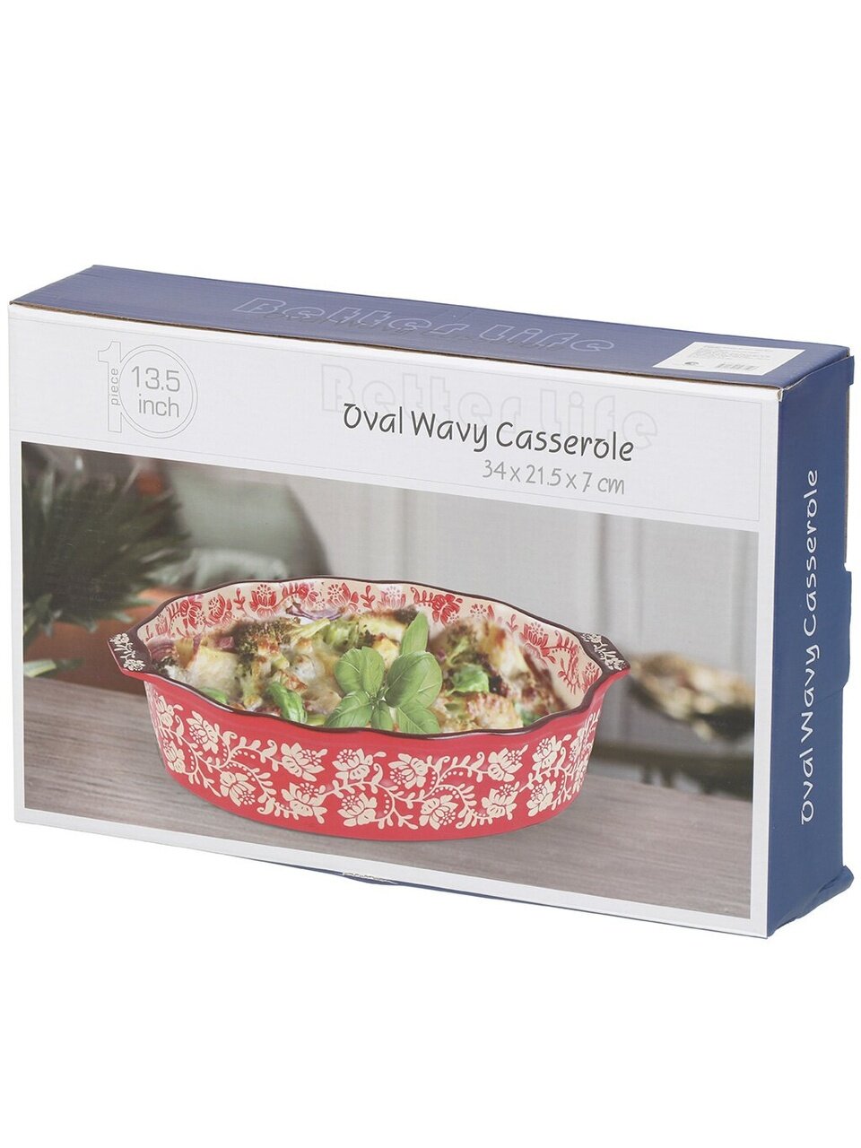 Форма для запекания имеет размеры 34.7×22.5×7 см, объём — 2.2 литра. Подходит для приготовления блюд на 4–6 персон.