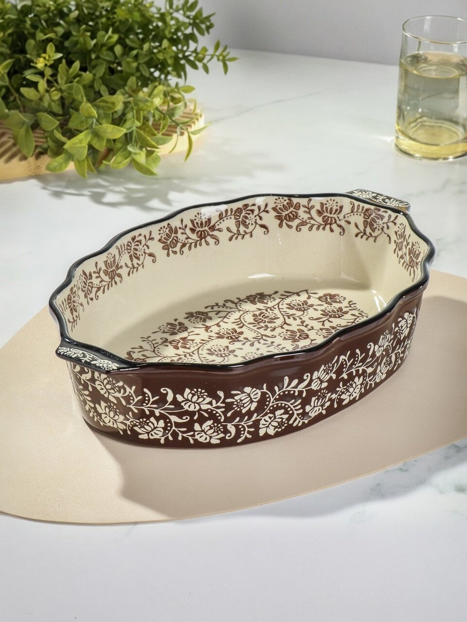 Форма для запекания из керамики 34.7х22.5х7 см «Ветви на шоколадном» — идеальное решение для запекания мяса, пирогов и десертов дома и на даче. Удобный размер, стильный дизайн, жаропрочность.
