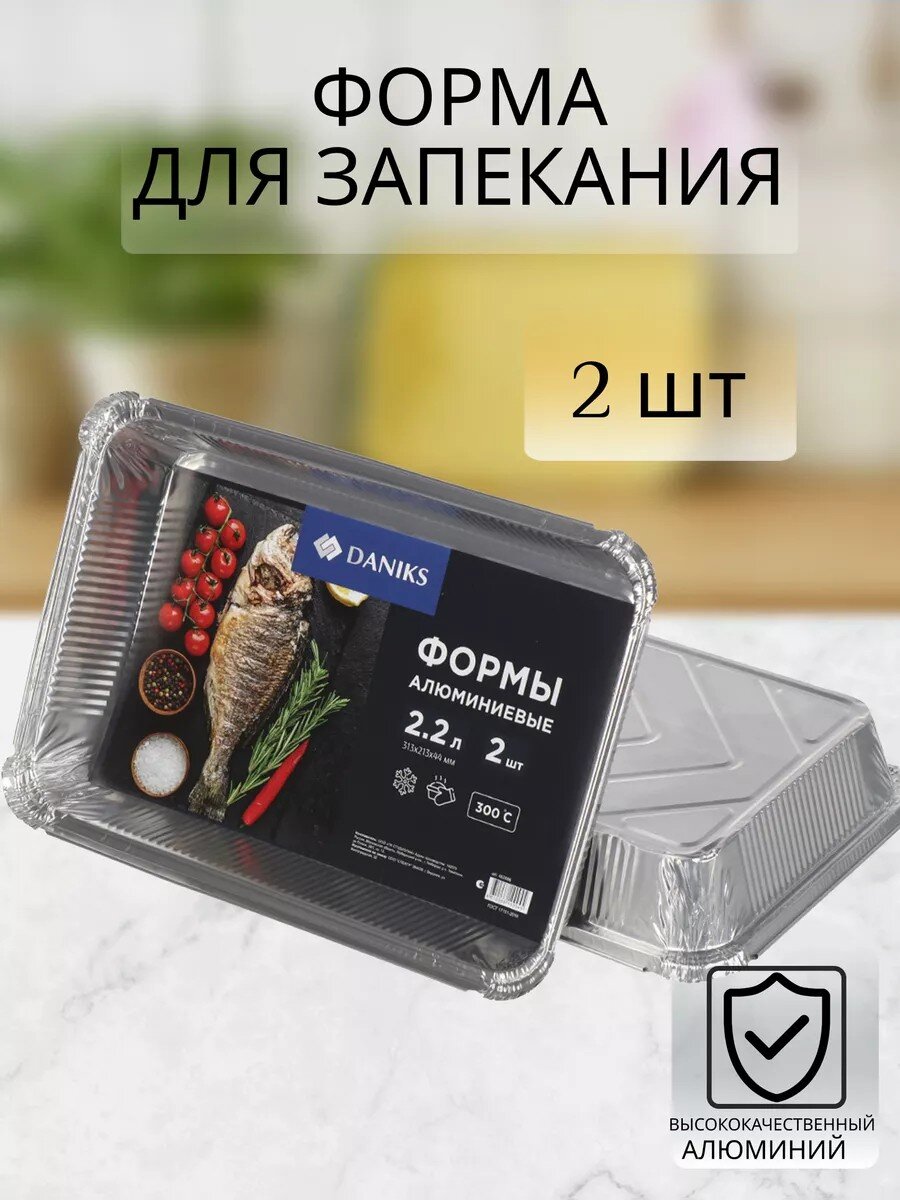 Форма для запекания из алюминия Daniks — практичное решение для тех, кто ищет, какую форму выбрать для духовки или как запекать курицу без прилипания. Эти формы не имеют антипригарного покрытия, зато алюминий быстро нагревается и равномерно распределяет тепло, что особенно важно для сочной рыбы или запечённых овощей. Набор из двух форм позволяет готовить сразу несколько блюд или использовать одну для основного блюда, другую — для гарнира.