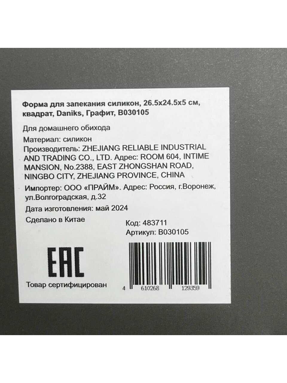 Вы можете приобрести «Форма для запекания силикон, 26.5х24.5х5 см, 1.2 л, квадратная, Daniks, Графит, B030105» и другие товары в нашем интернет-магазине в Санкт-Петербургe по низким ценам и с бесплатным самовывозом.