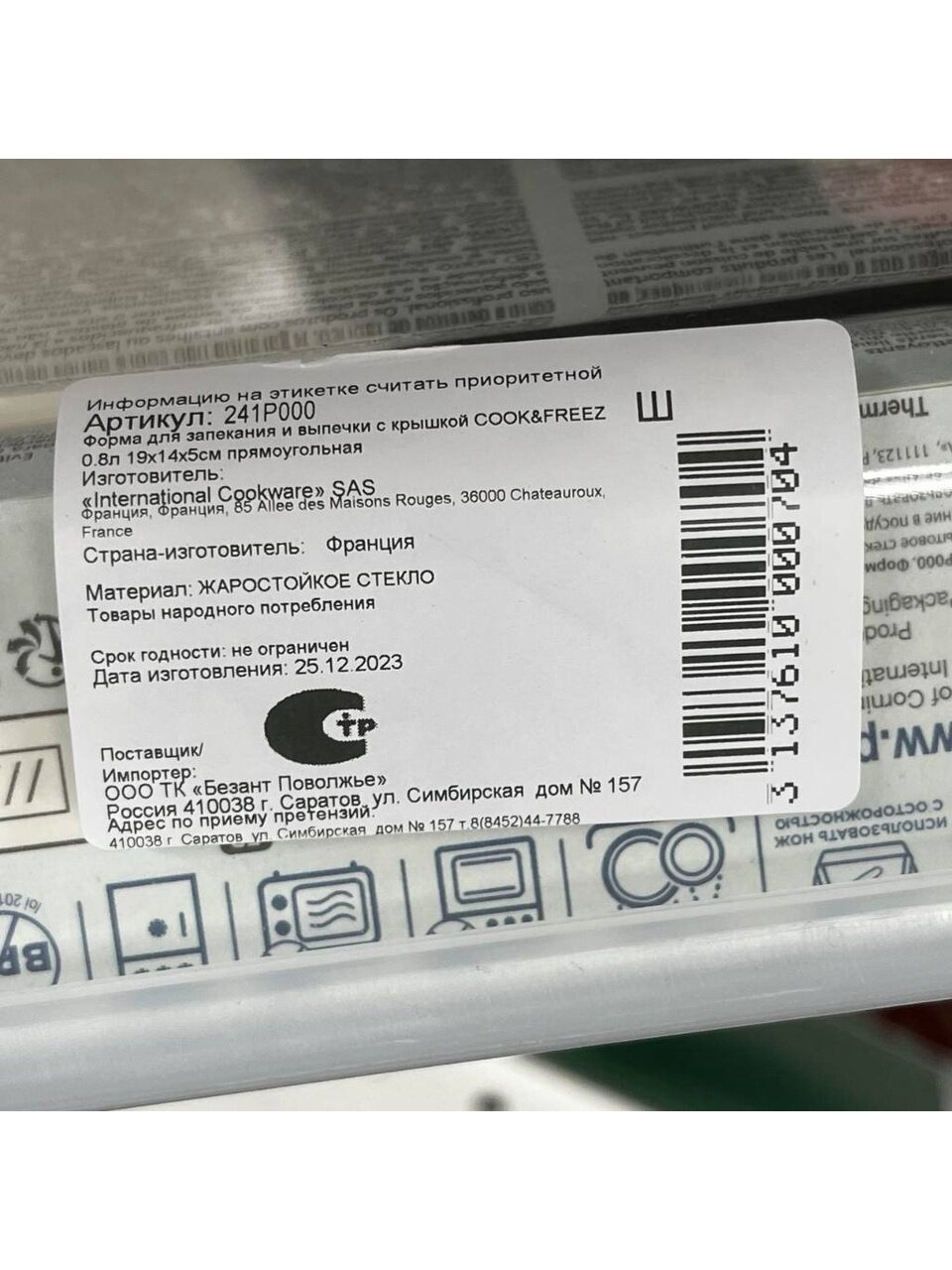 Вы можете приобрести «Форма для запекания стекло, 14х19х4 см, 0.8 л, прямоугольная, с крышкой, Pyrex, Cook Freez, 241Р000/2021» и другие товары в нашем интернет-магазине в Орле по низким ценам и с бесплатным самовывозом.