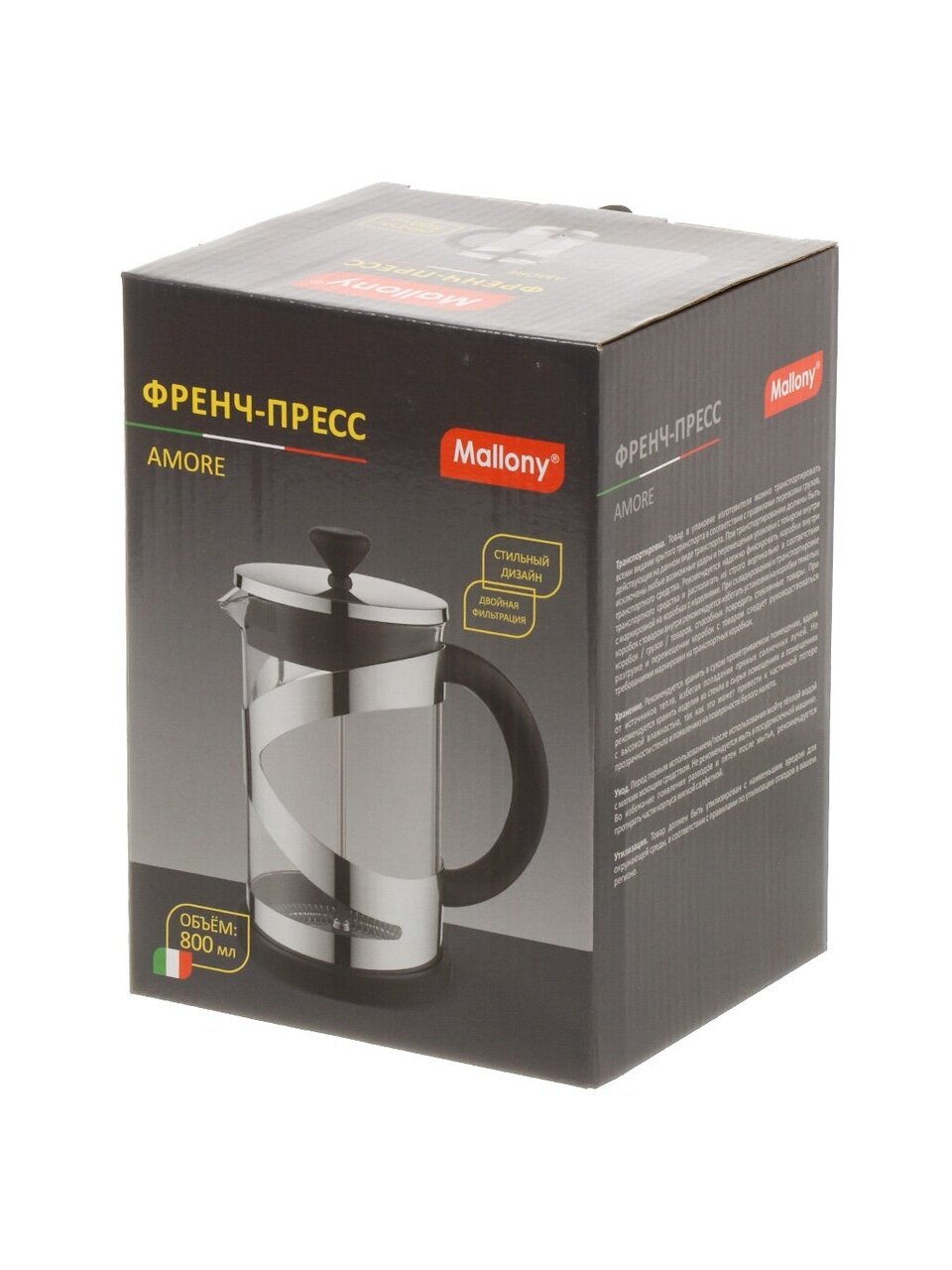 Вы можете приобрести «Френч-пресс 0.8 л, стекло, нержавеющая сталь, Mallony, Amore, 107622» и другие товары в нашем интернет-магазине в Санкт-Петербургe по низким ценам и с бесплатным самовывозом.