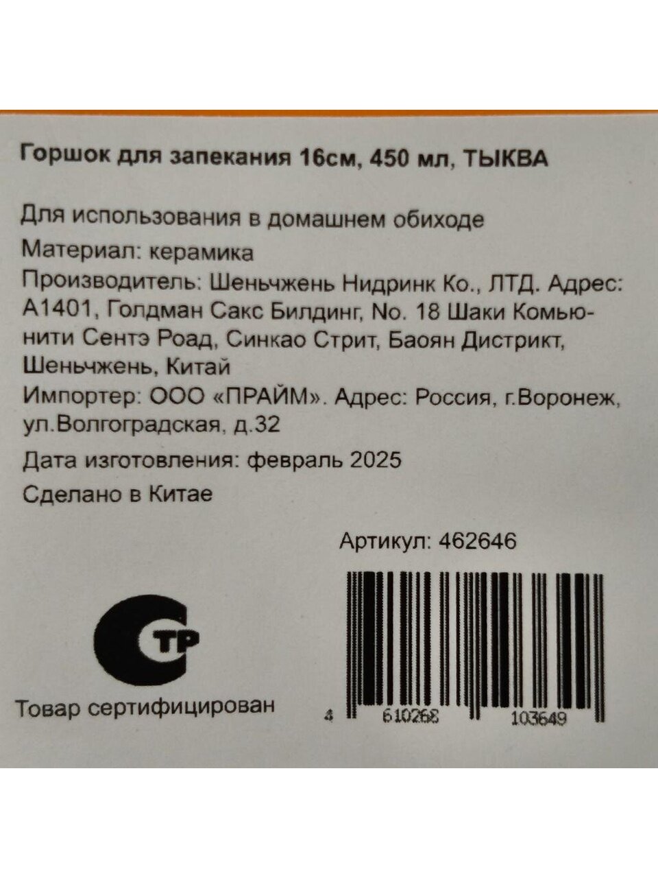 Вы можете приобрести «Горшок для запекания керамика, 0.45 л, Тыква, Y6-10218/Y4-9173» и другие товары в нашем интернет-магазине в Астрахани по низким ценам и с бесплатным самовывозом.
