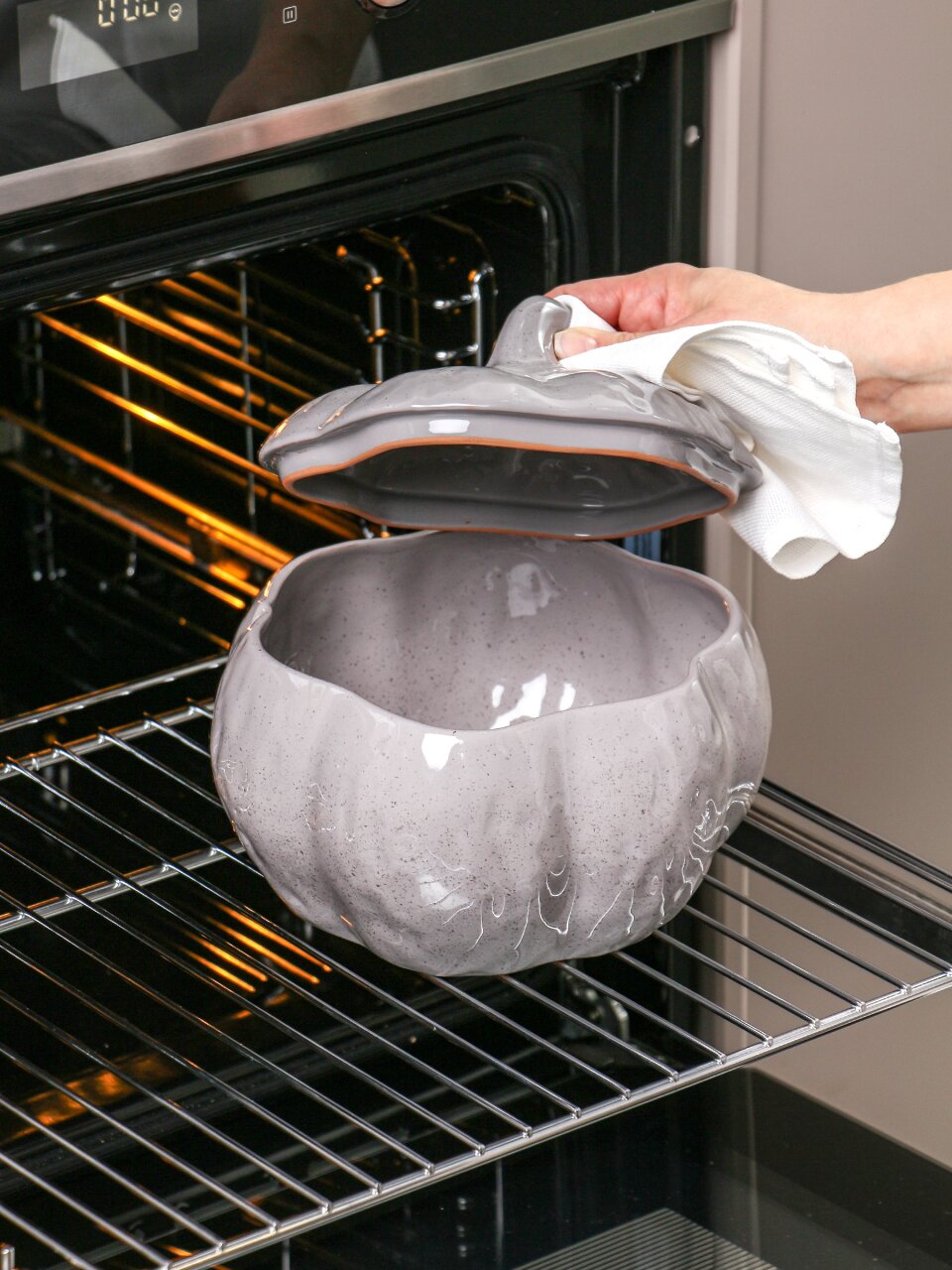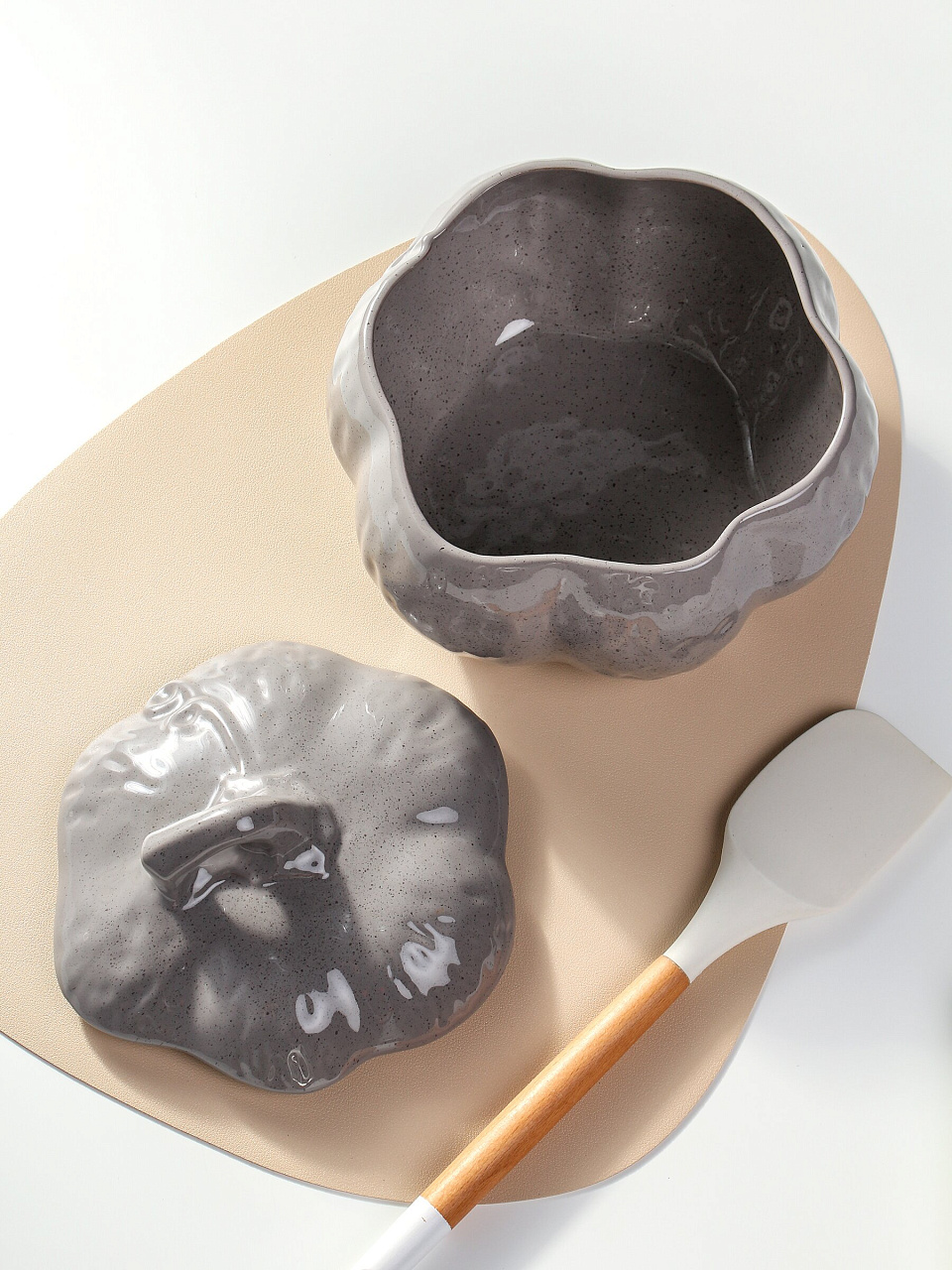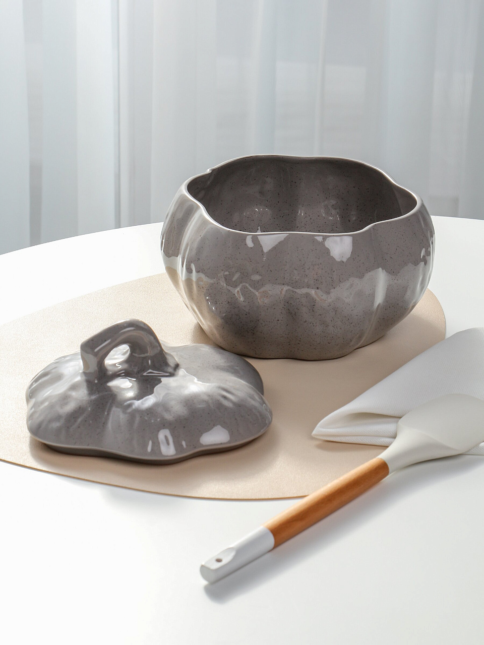 Чем отличается этот горшок от аналогов? В отличие от стеклянных или металлических форм, керамика не вступает в реакцию с пищей и подходит для диетических рецептов. Серый цвет и фигурный дизайн делают изделие универсальным для современного и классического интерьера. Модель Тыква — это не только практичность, но и эстетика на вашей кухне.