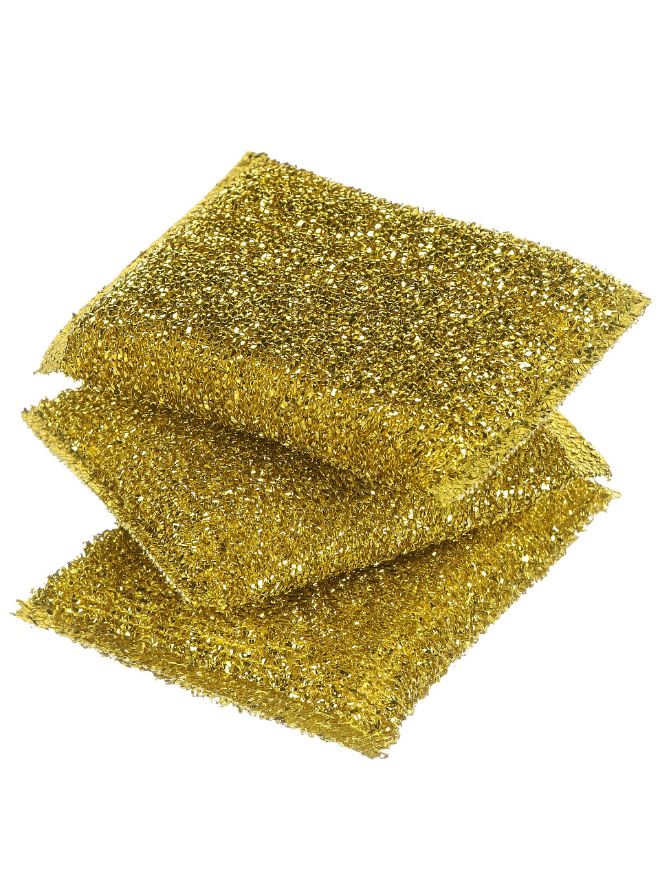 В упаковке 3 губки золотистого цвета, модель МГП-003, бренд Аквамаг.
