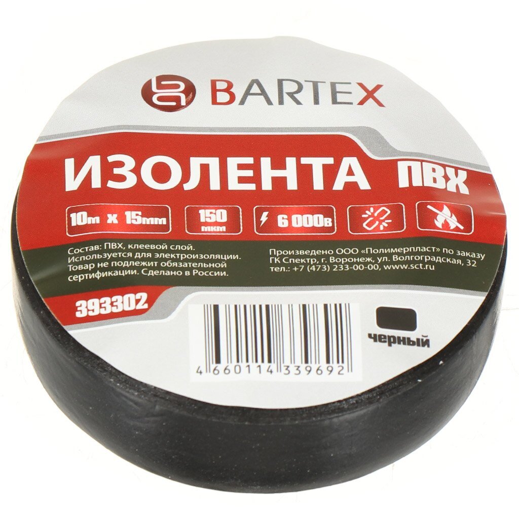 Вы можете приобрести «Изолента ПВХ, 15 мм, 150 мкм, черная, 10 м, индивидуальная упаковка, Bartex» и другие товары в нашем интернет-магазине в Клинцах по низким ценам и с бесплатным самовывозом.