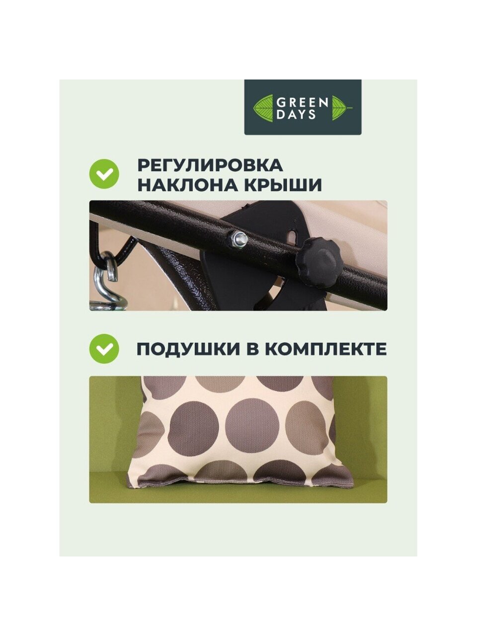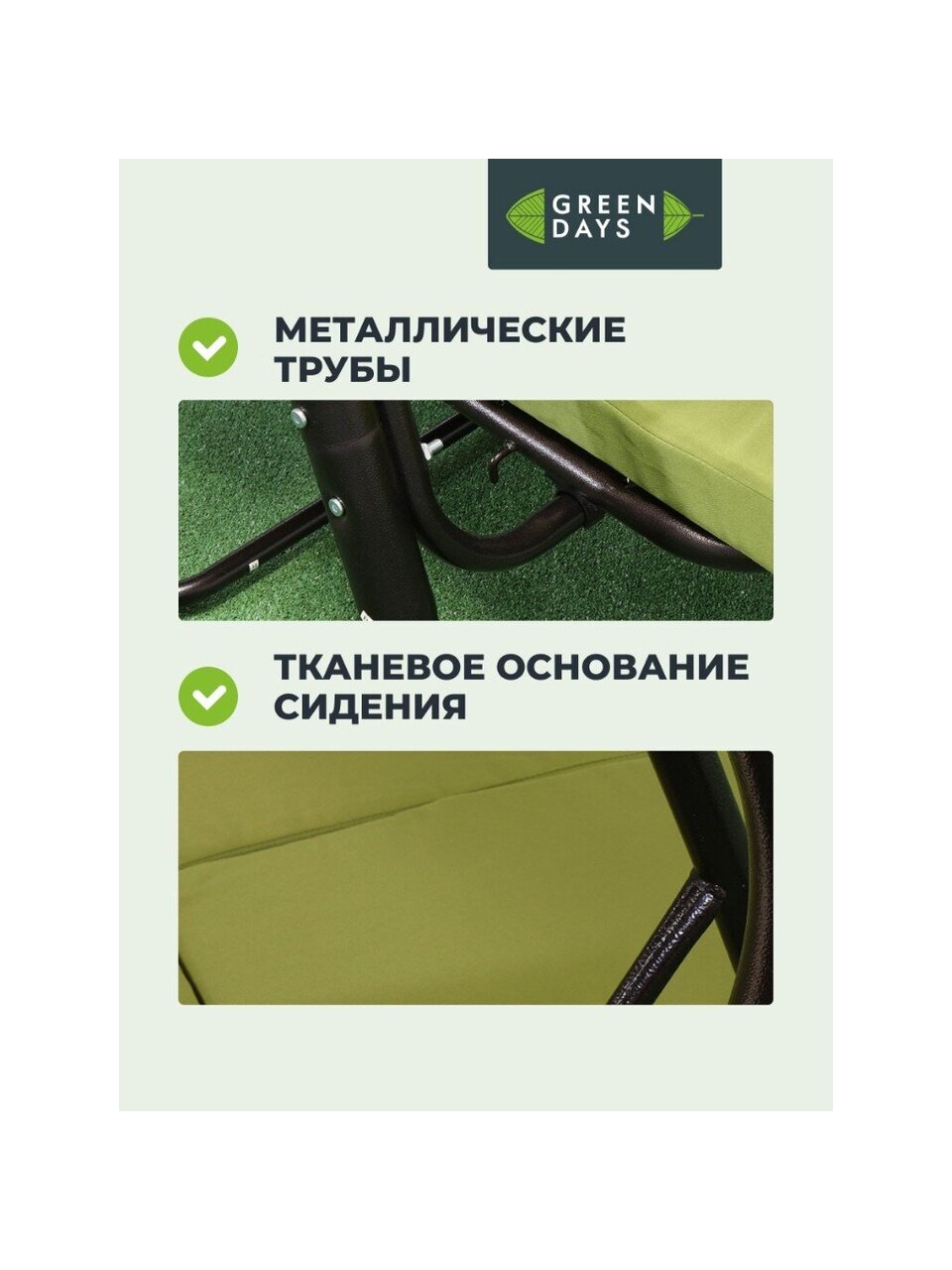 Покупая эти качели, вы получаете не просто функциональный элемент сада, но и возможность наслаждаться каждой минутой отдыха на свежем воздухе. Забудьте о суете и насладитесь гармонией природы вместе с Green Days!
