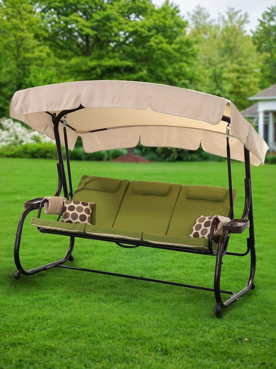 Вы можете приобрести «Качели садовые 3-местные, 220х130х177 см, 280 кг, Green Days, раскладываются в кровать, зеленые, YTSW3045-5S, металл» и другие товары в нашем интернет-магазине в Обнинске по низким ценам и с бесплатным самовывозом.