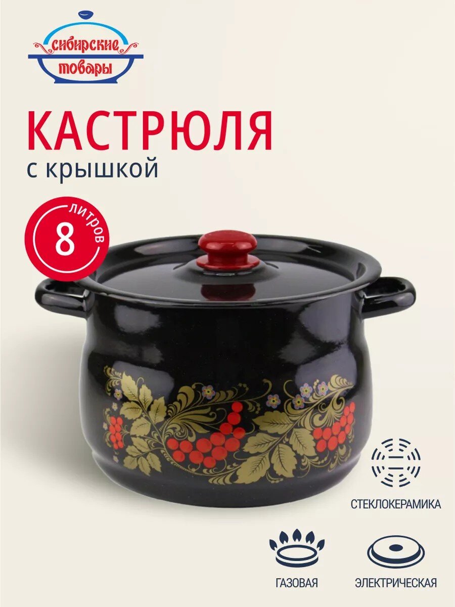 Эмалированная кастрюля 8 л «Рябинушка» — выбор для дома и дачи: универсальный объём, прочная сталь, стильный дизайн, выгодная цена.