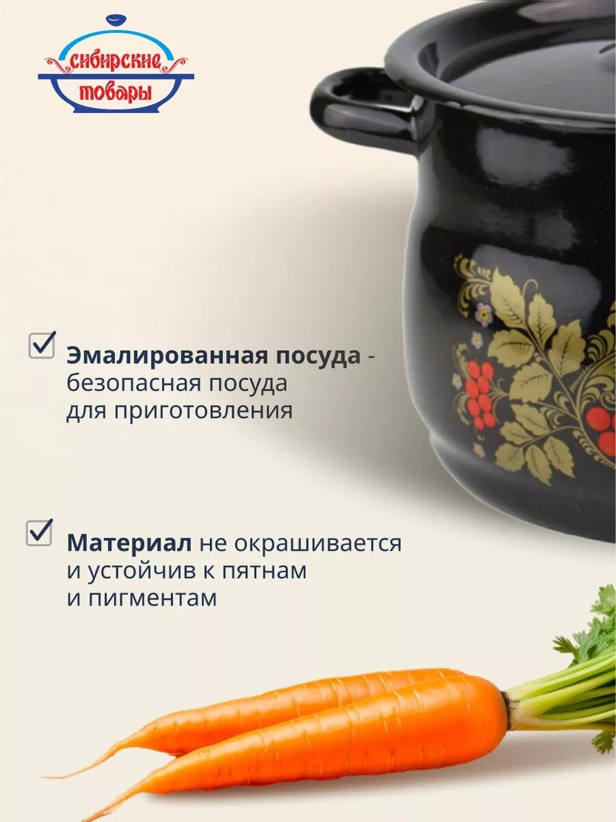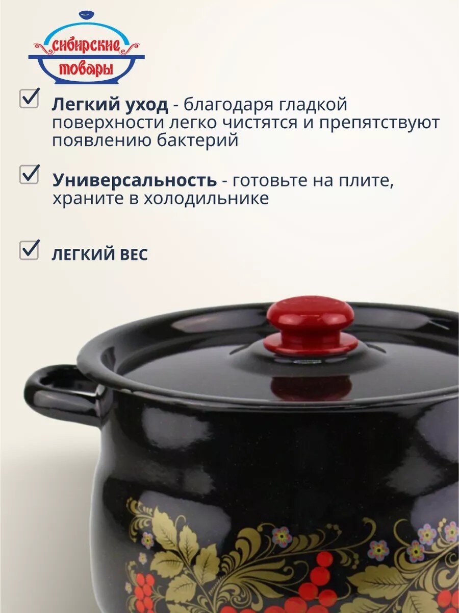Эмалированная кастрюля на 8 литров — это универсальный выбор для тех, кто ищет надёжную посуду для ежедневного или сезонного использования. Благодаря сферической форме и прочному корпусу из эмалированной стали кастрюля равномерно распределяет тепло, что важно для варки супов, каш, компотов и пельменей. Крышка из стали плотно прилегает, сохраняя вкус и полезные свойства блюд. Если вы ищете, какую кастрюлю выбрать для дачи или семьи, модель «Рябинушка» от бренда «Сибирские товары» — это оптимальное сочетание долговечности и эстетики.