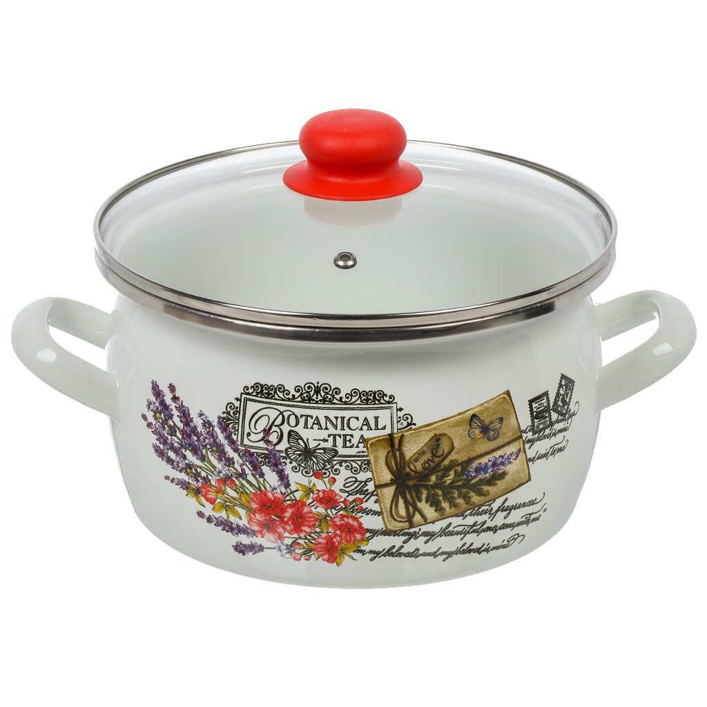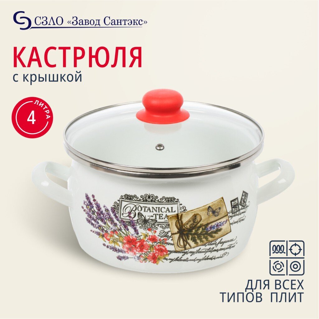 Кастрюля эмалированная Сантэкс Прованс 4 л: универсальное решение для индукции, газа и стеклокерамики. Лёгкая, долговечная, с безопасной стеклянной крышкой.