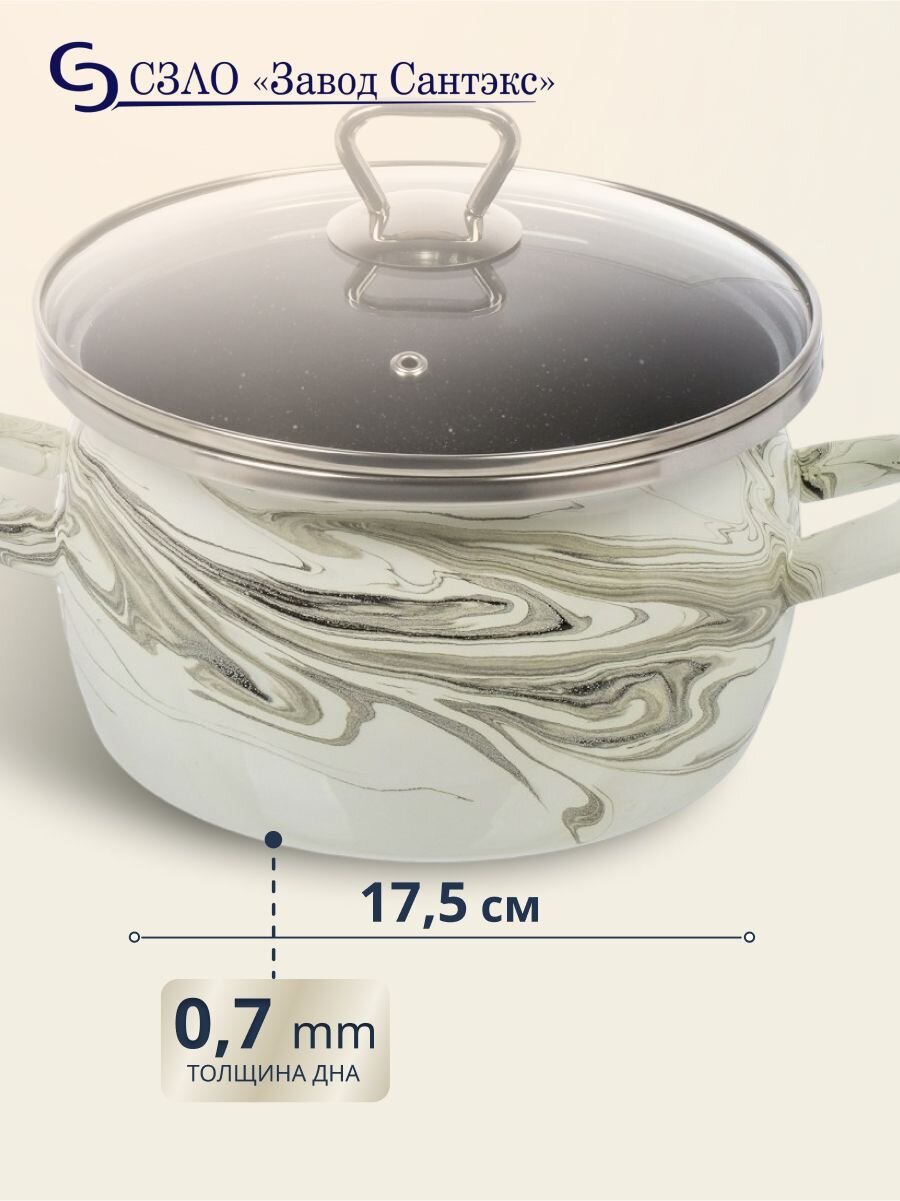 Вы можете приобрести «Кастрюля эмалированная сталь, 3 л, крышка стекло, сферический, Сантэкс, Шейк серый гранит, 1-2430111, бело-черная, индукция» и другие товары в нашем интернет-магазине в Шахтах по низким ценам и с бесплатным самовывозом.