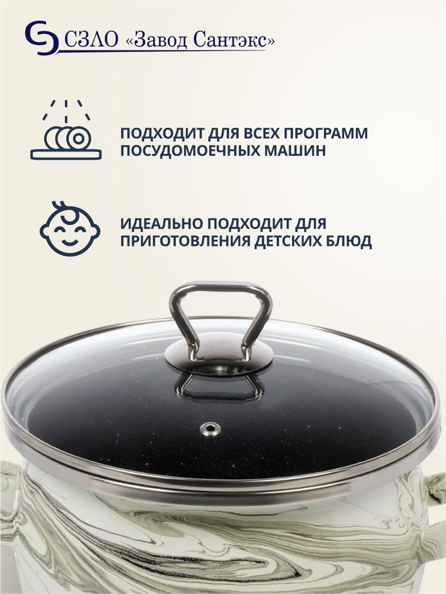 Кастрюля - идеальный выбор для готовки и хранения продуктов. Она прочная, имеет привлекательный дизайн и подходит для разных целей. В ней можно варить картофель, готовить супы, тушить мясо, рыбу, птицу и овощи. Благодаря эмали, которая не окисляется в кастрюле можно не только готовить, но и хранить такие блюда, как кислые щи и компоты.