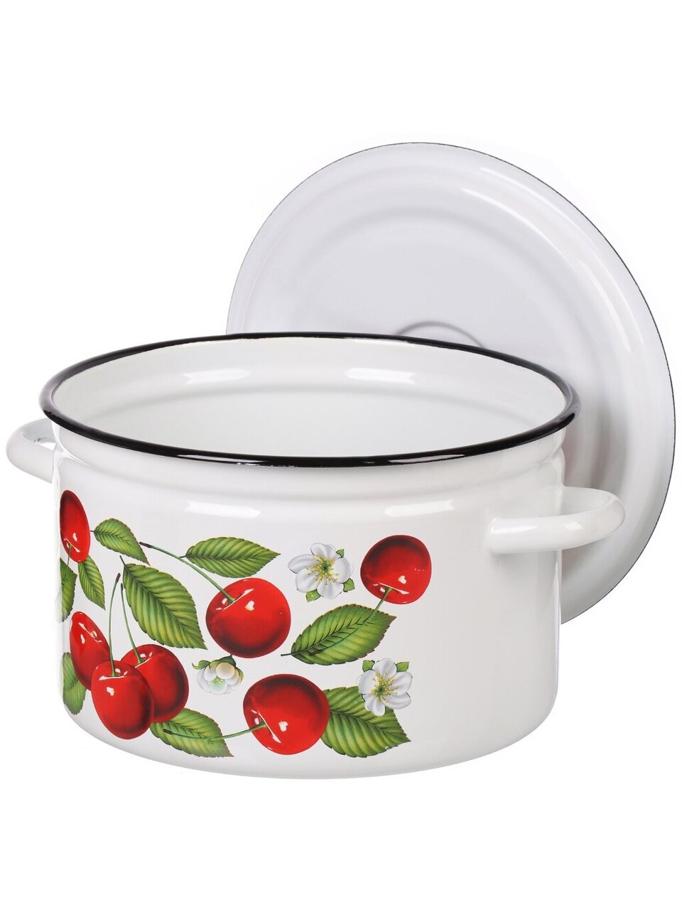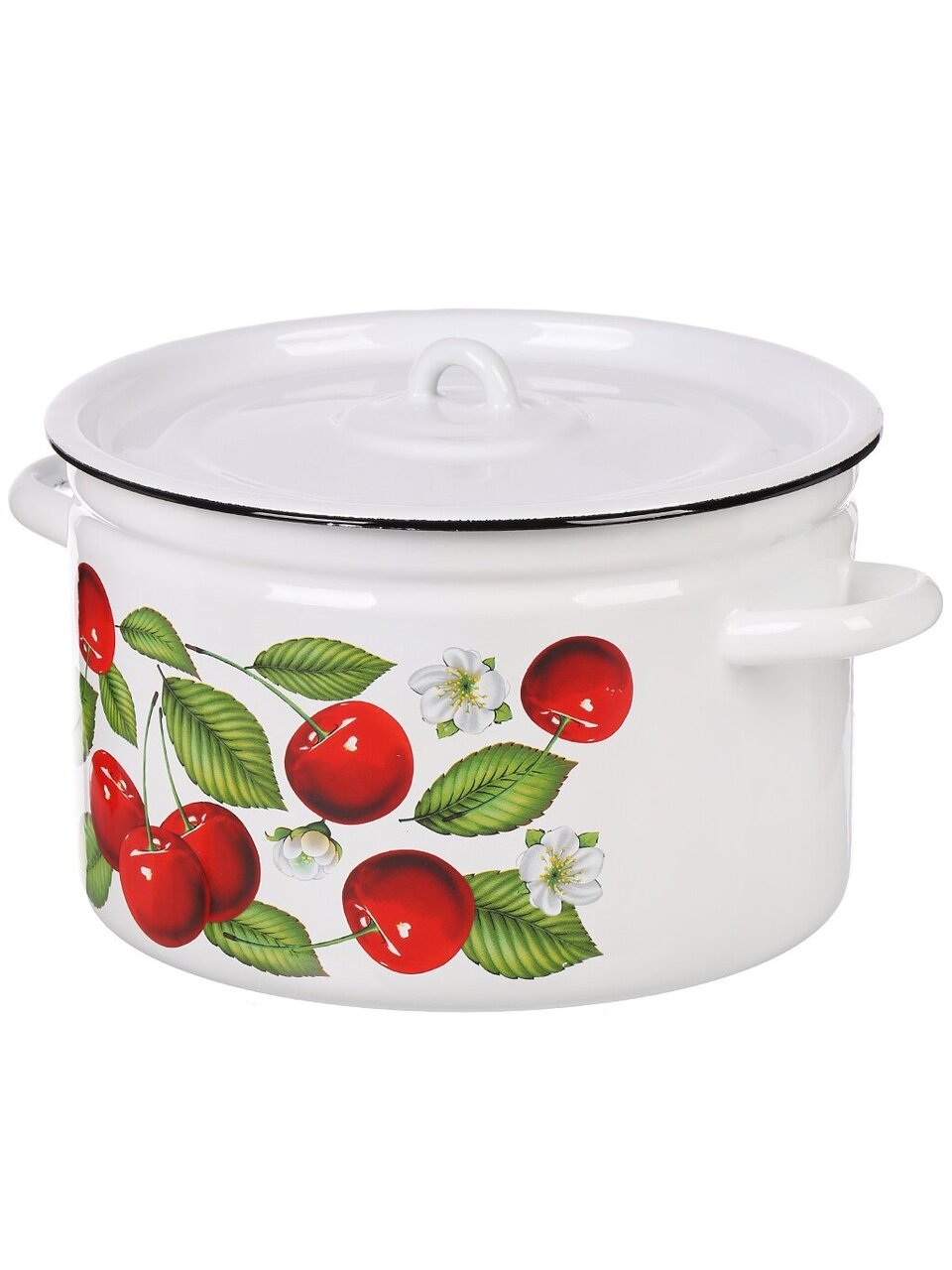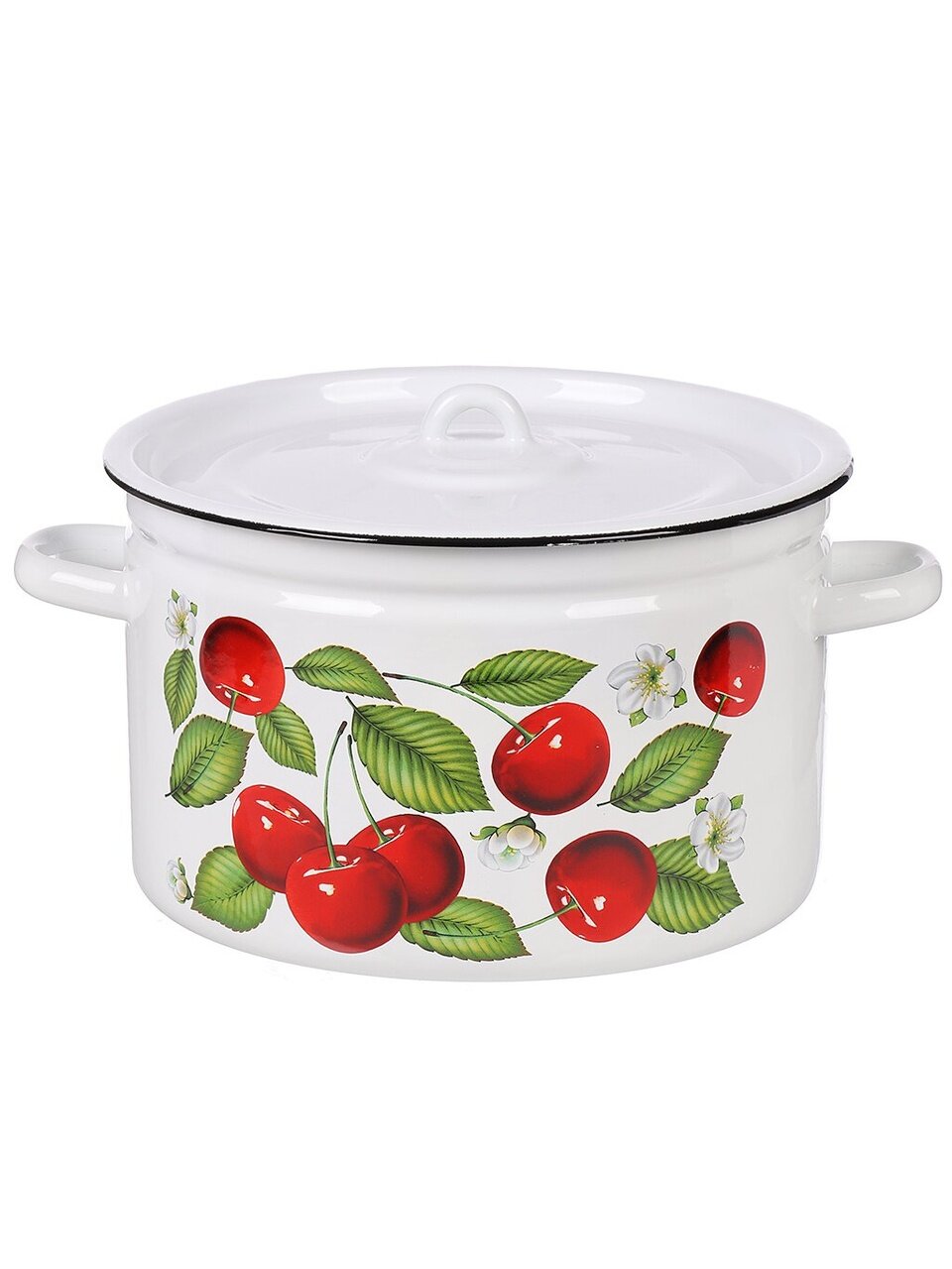 Кастрюля "Вишня ягоды" из эмалированной стали понадобится на каждой кухне: дома и на даче, любителю кулинарии и профессиональному повару. Такое изделие прекрасно подходит для приготовления супов, рагу, компотов и киселей. Кастрюля цилиндрической формы изготовлена из эмалированной стали в соответствии с требованиями ГОСТ 24788-2018, толщина эмали не менее 0.20 мм.
