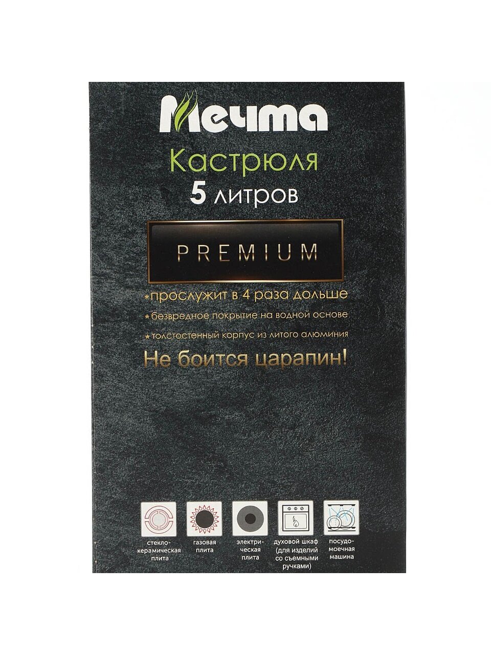 Кастрюля 5 л с антипригарным покрытием Мечта Premium grey: готовьте любимые блюда без пригорания и лишних хлопот — идеальный выбор для семьи и дачи
