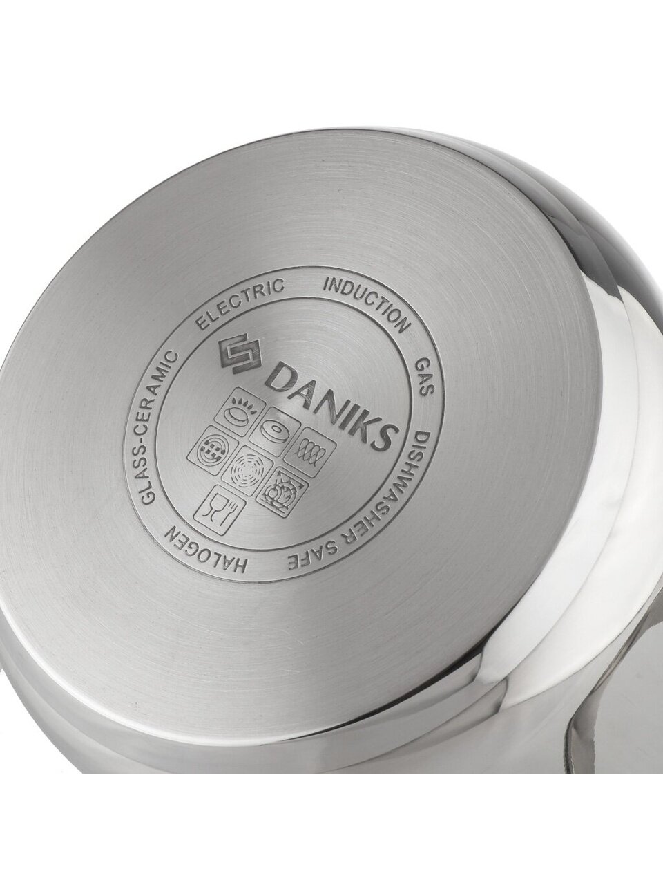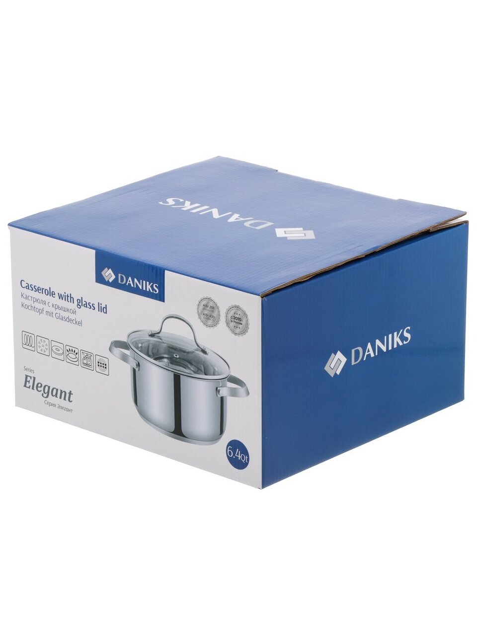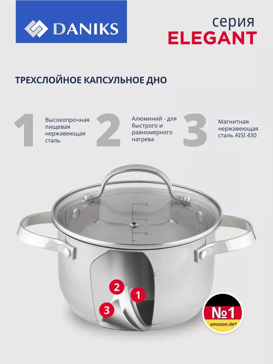 Кастрюля из нержавеющей стали Daniks Элегант 6.1 л с капсульным дном и стеклянной крышкой — оптимальный выбор для семьи: готовьте супы, каши и пельмени без пригорания и хлопот.
