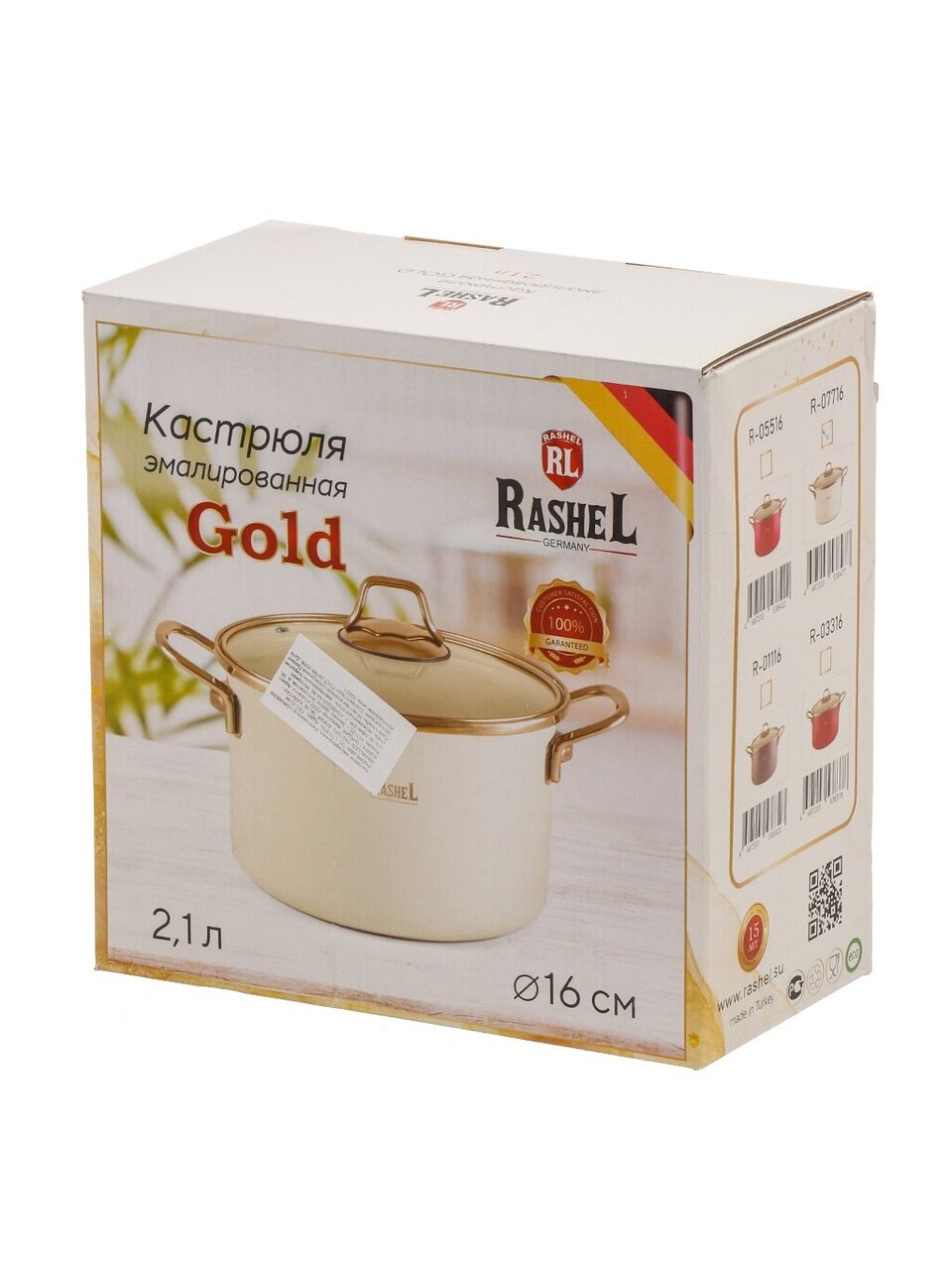 Вы можете приобрести «Кастрюля эмалированная сталь, 2.1 л, крышка стекло, ручки золото, RasheL, Gold, R-07716, кремовая, индукция» и другие товары в нашем интернет-магазине в Ставрополе по низким ценам и с бесплатным самовывозом.